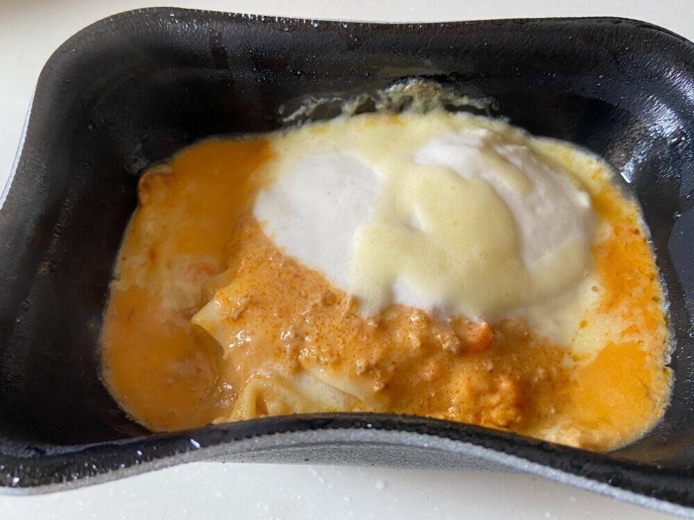 ミートソースとベシャメルソースの2種類のソースにとろけるチーズ、最高の組み合わせです。冷凍食品と思えないほどのコクや旨みがたっぷり!