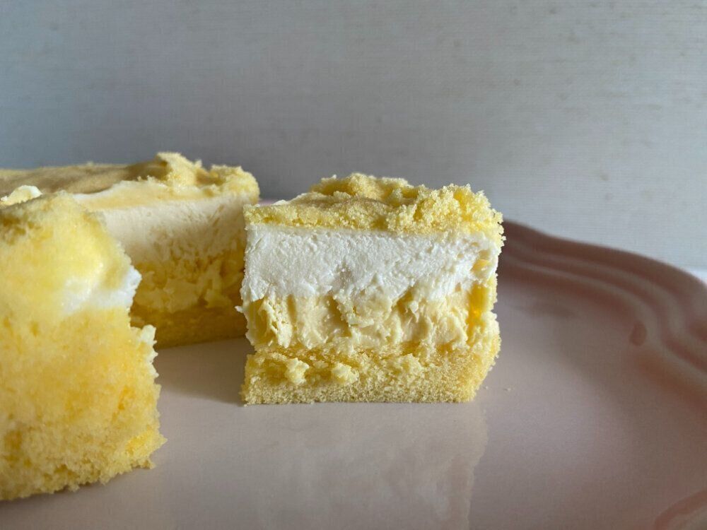 業務スーパーのおしゃれすぎる新商品スイーツ「ダブルチーズケーキ」。業務スーパーでは冷凍のチーズケーキは数種類販売がありますが、過去イチおいしいと評判です。