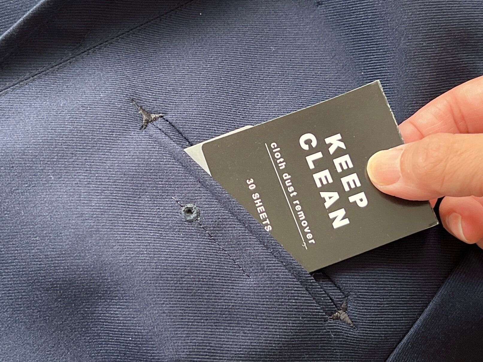 黒っぽい洋服やスーツを着たときは少しのほこりでも気になってしまいますね。家を出るときはキレイだったのに、外出中にほこりがついてしまうこともあります。そんなとき、この「身だしなみふせん」がほこりやゴミをしっかりキャッチしてくれます!