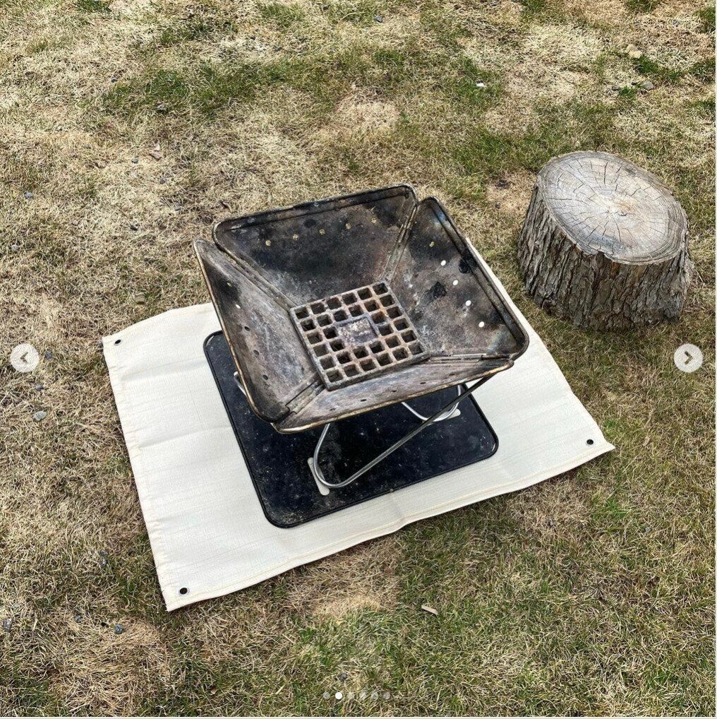 最近は焚き火シート必須のキャンプ場があるそうです。焚き火シートを敷くだけで、直火から地面を守れたり、燃えかすや灰を集めやすくなったりします。ワークマンでも耐熱性の高いグラスファイバー素材を使用した焚き火シートが買えるんです!折りたたんで鍋敷きのように使うこともできますよ。収納袋付きがうれしいですね。