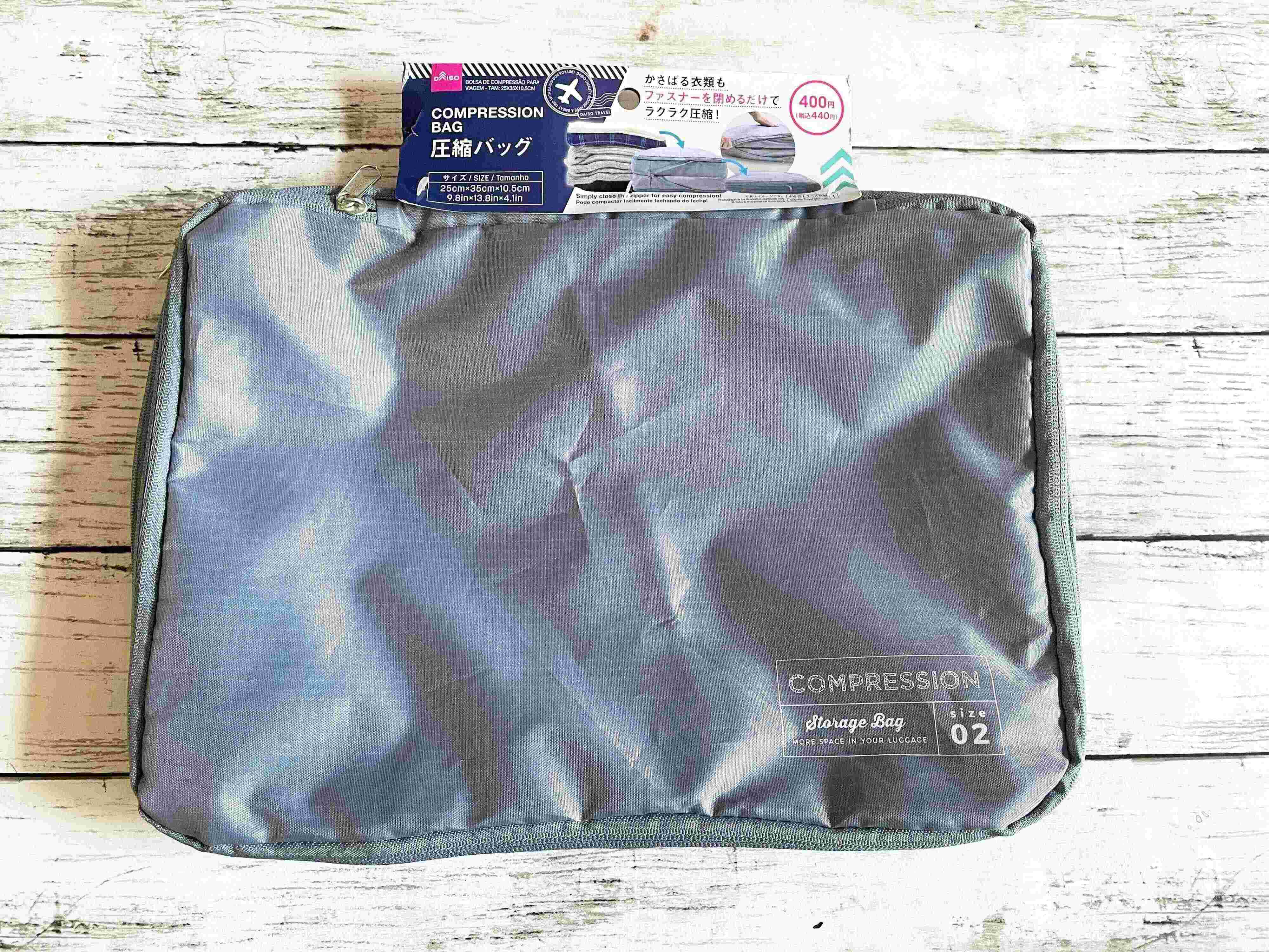 旅行だけではなく、季節外の服をコンパクトに収納できると人気の商品ですよ。価格は440円です。