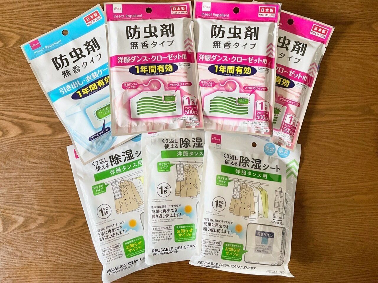 1つめは、ジメジメしたこれからの季節、クローゼットの必需品である「防虫剤」と「除湿シート」です。