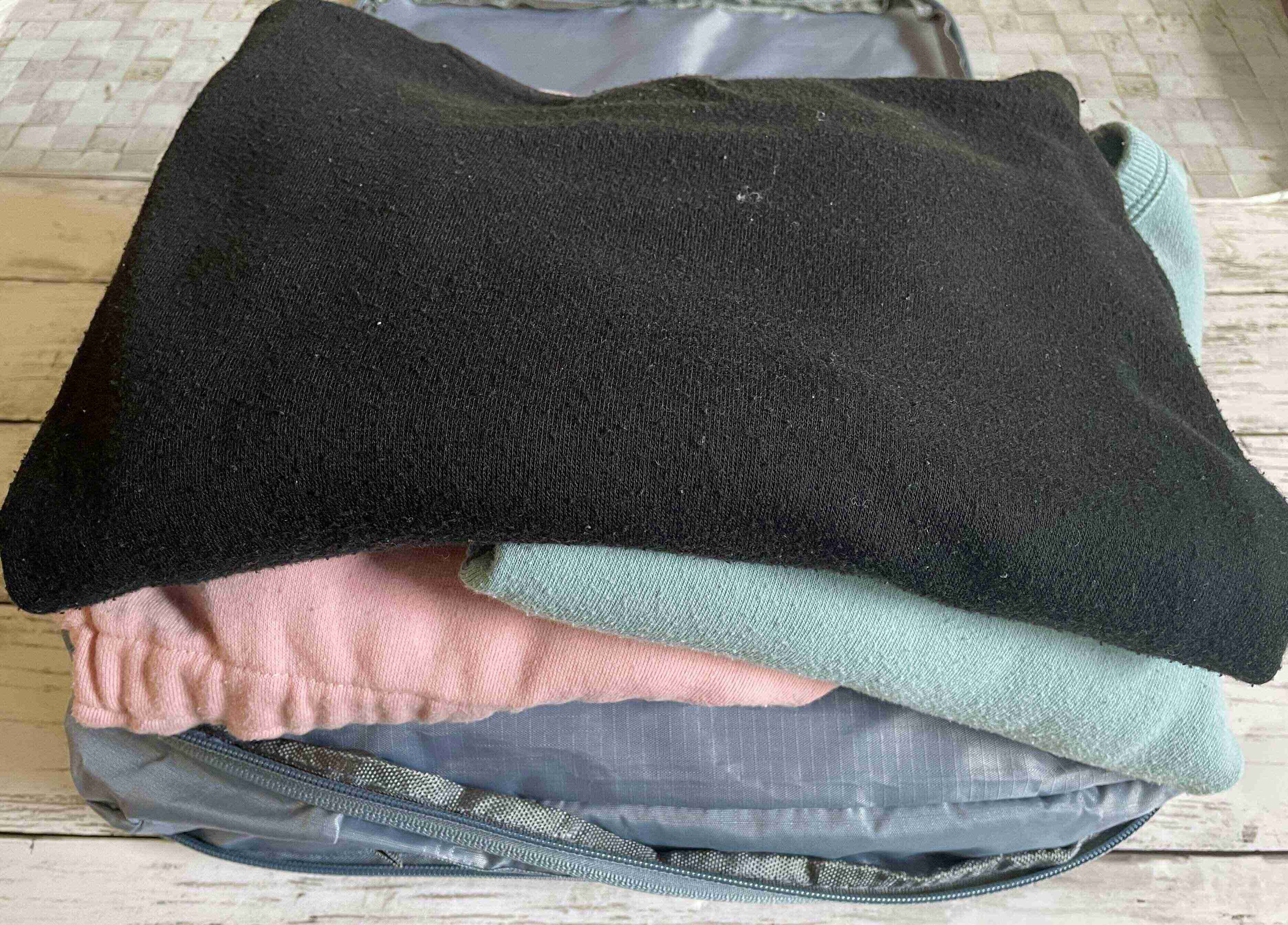 ボリュームのある服でも、1/3くらいの厚さに圧縮できます。
