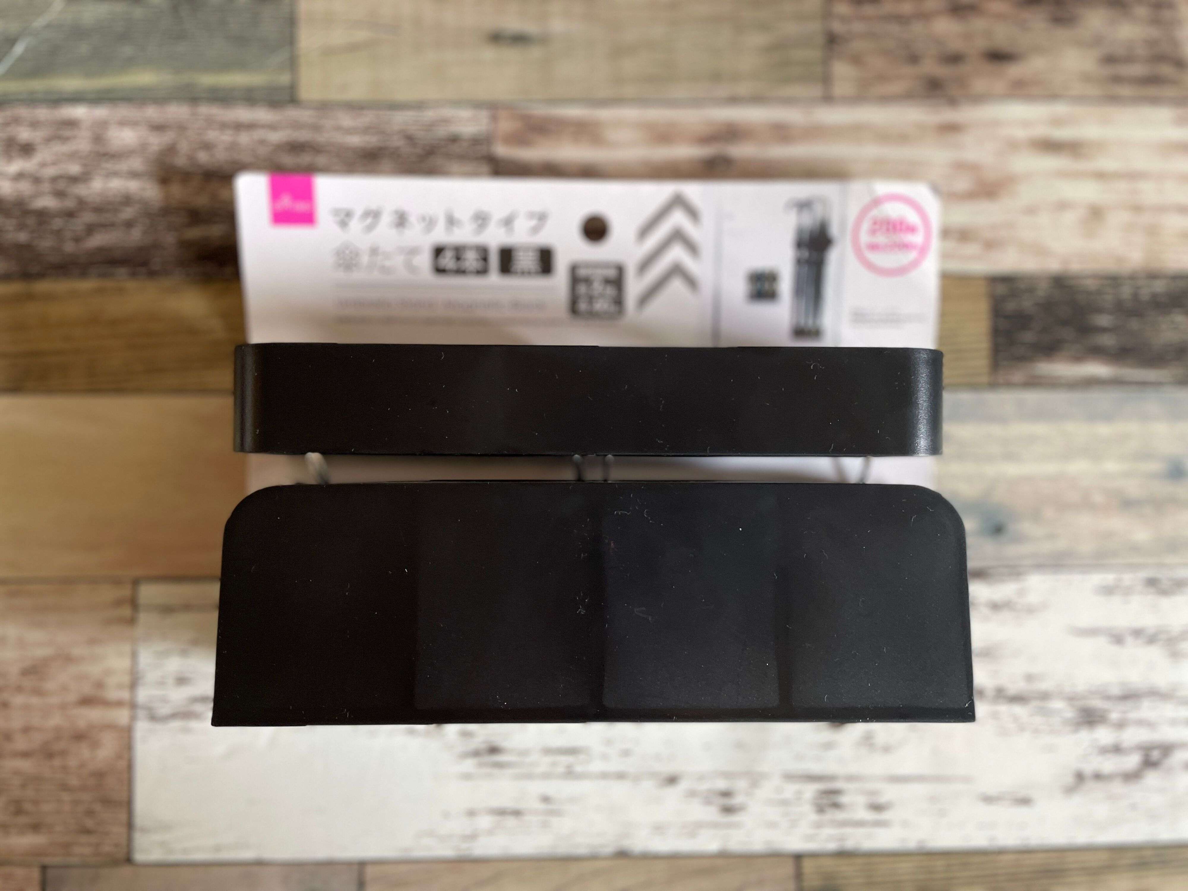 2つめは、マグネットで玄関ドアに取り付けるタイプの「傘たて」です。4本用で価格は220円。