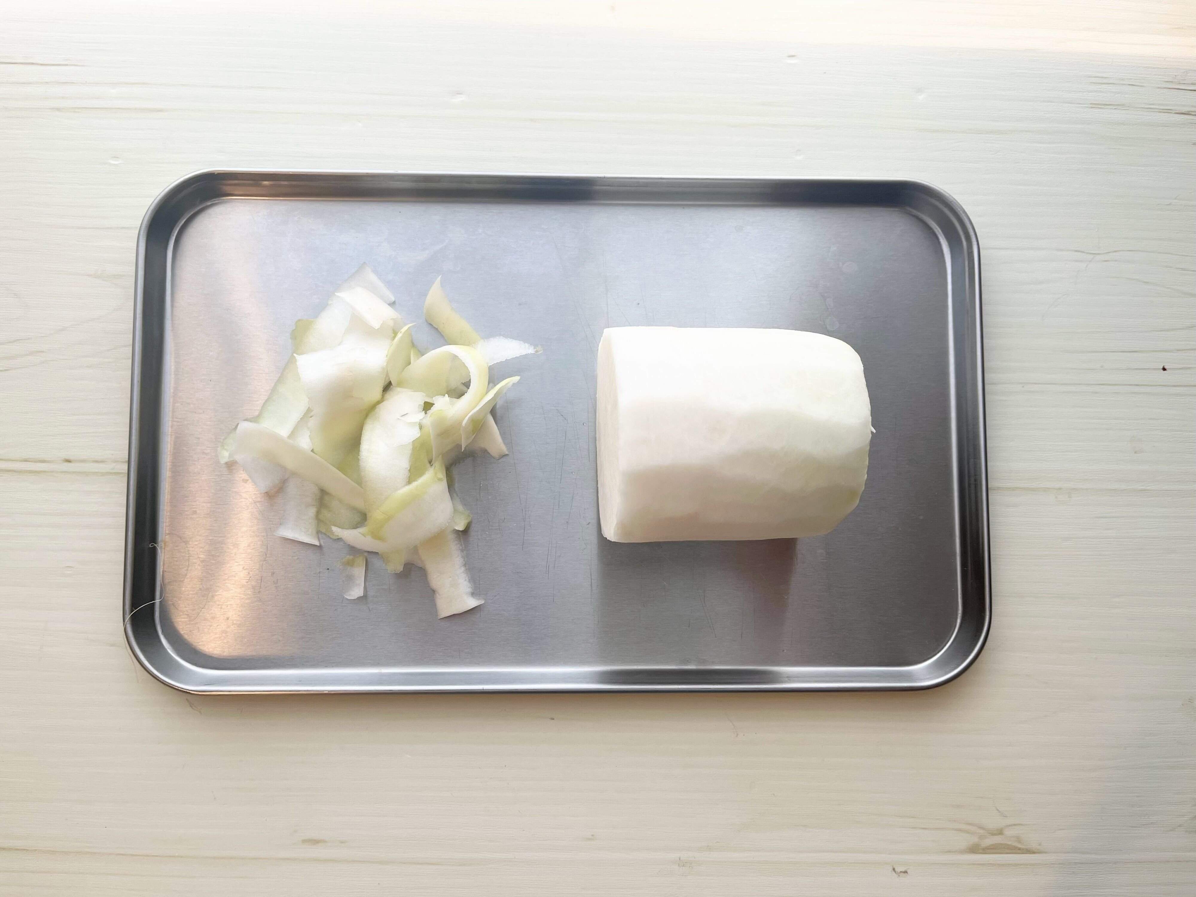 皮のむき方はピューラーなど薄くむく程度でいいとのこと。