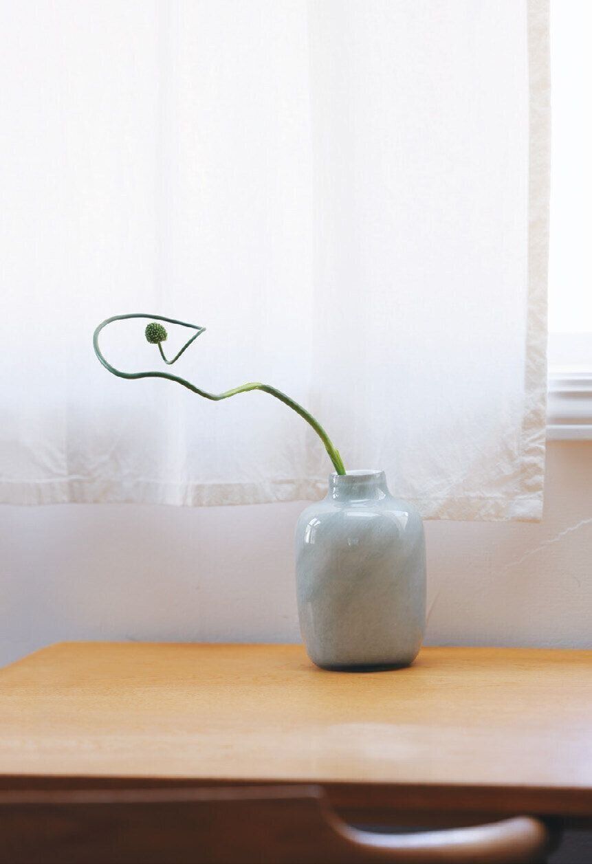 花は暮らしに自然の息吹を運んでくれるもの。「1本でも飾ってみると、空間も気持ちも変わりますよ」と岡本さん。あえて枝が曲がっている花を選んだり、単色でない花に注目したり、視点を変えるだけで1本でもサマになる花に出合えるように。