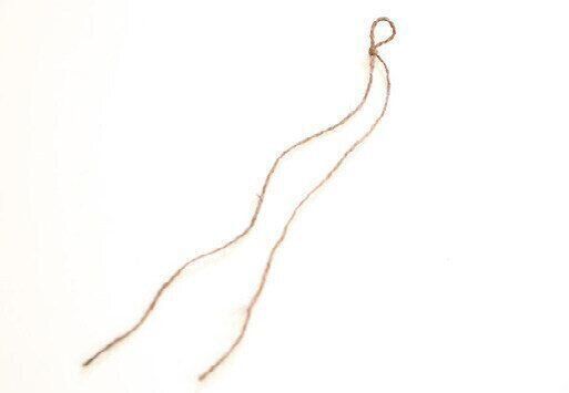 1mくらいの麻ひもを半分に折り、真ん中に3~5cmのループができるように、固く結びます。この麻ひもと輪ゴム2本を使って束ねます。