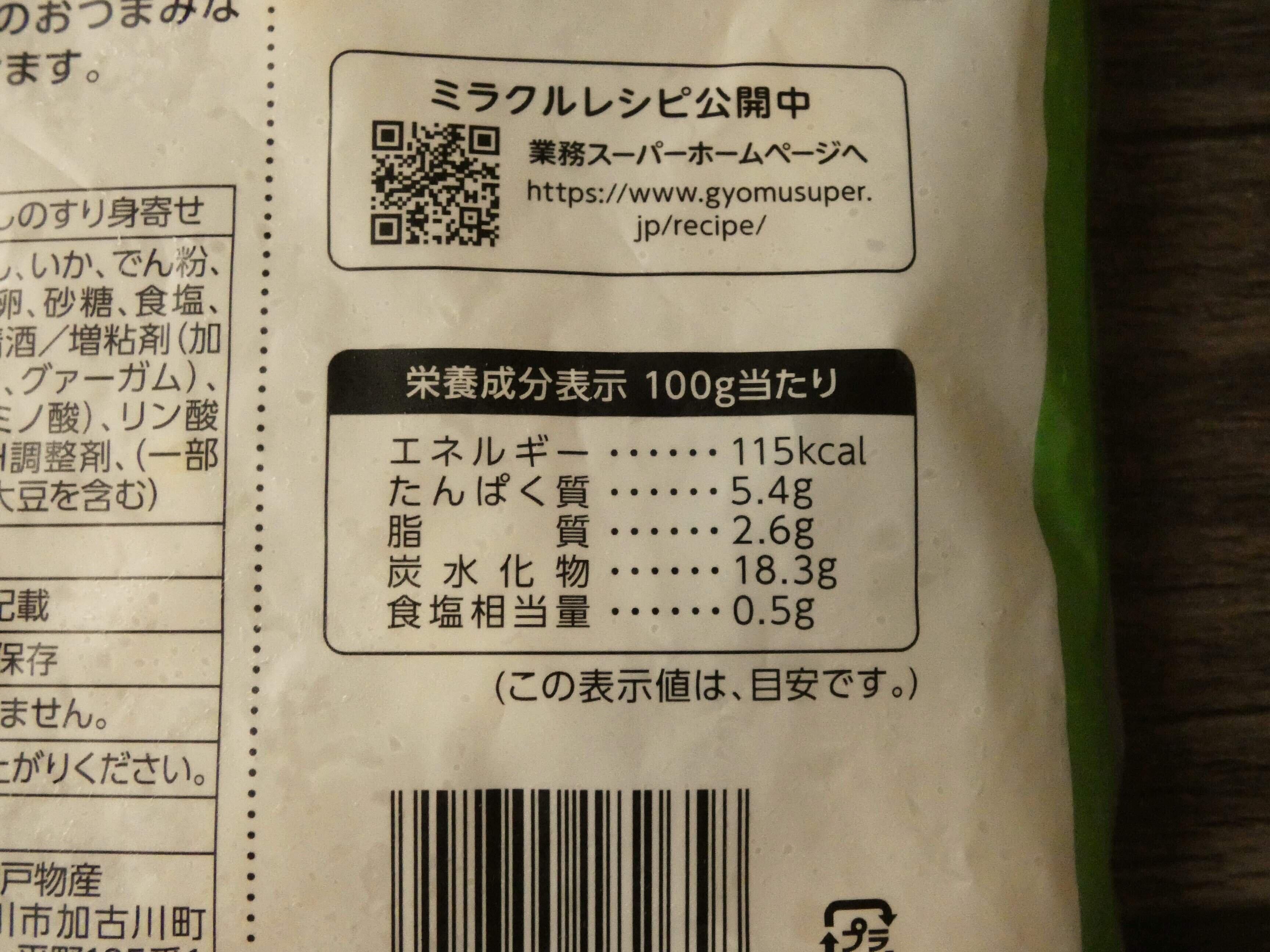 栄養成分表示を見ると、100g当たりのエネルギーは115kcal。