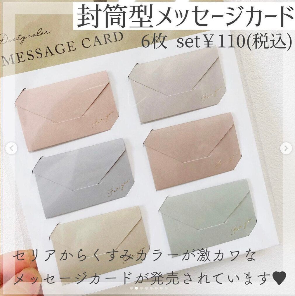 ギフトにちょこっと挨拶を添えるのにぴったりなのが、こちらのメッセージカード。封筒型でメッセージを隠せることで、さりげなさがあっていいですよね。落ち着いたくすみカラーが激かわ!いろんな場面で使えそうですね。
