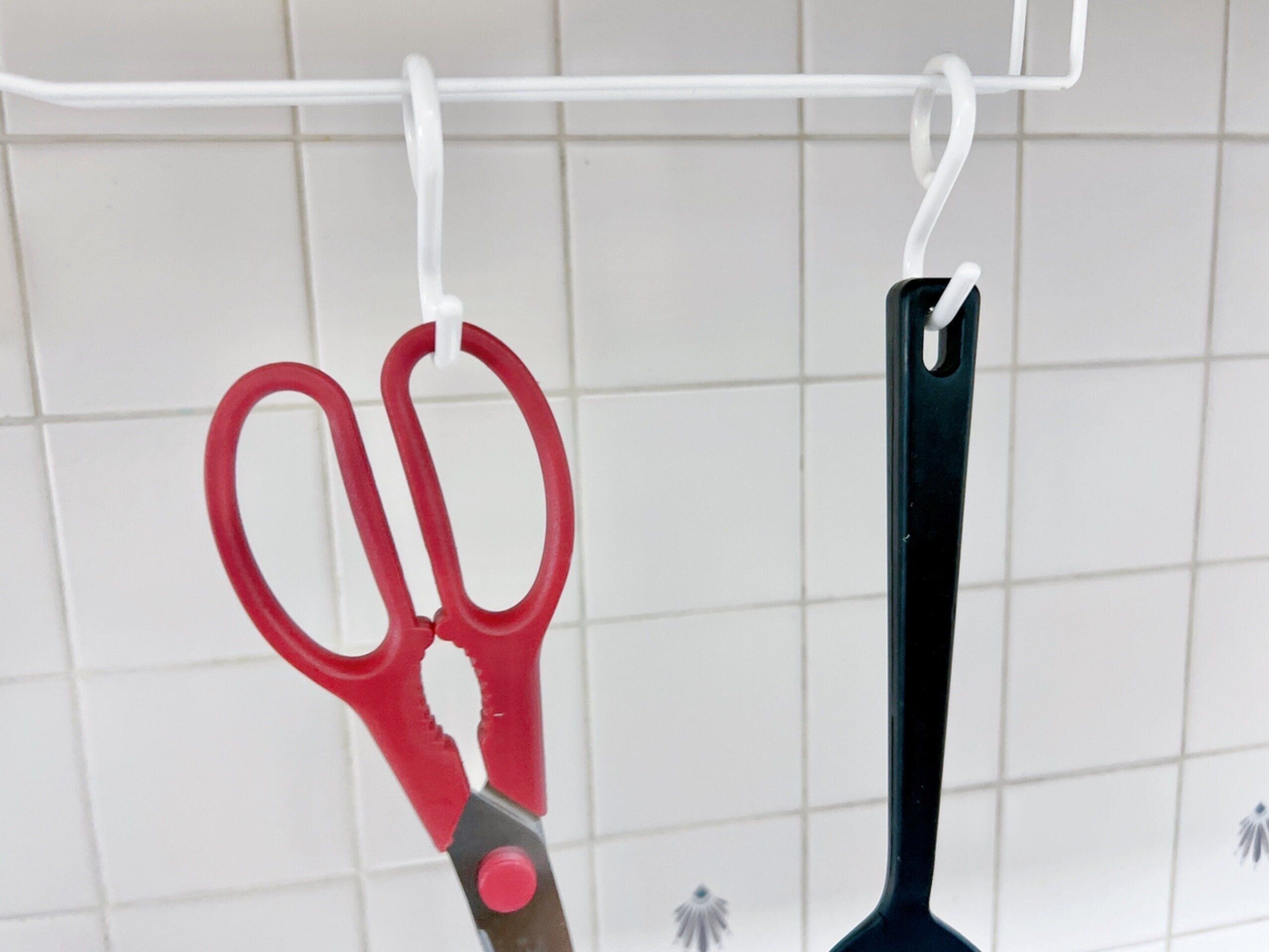 キッチンツールを吊り下げておくと、片手ですぐに取れて便利です。