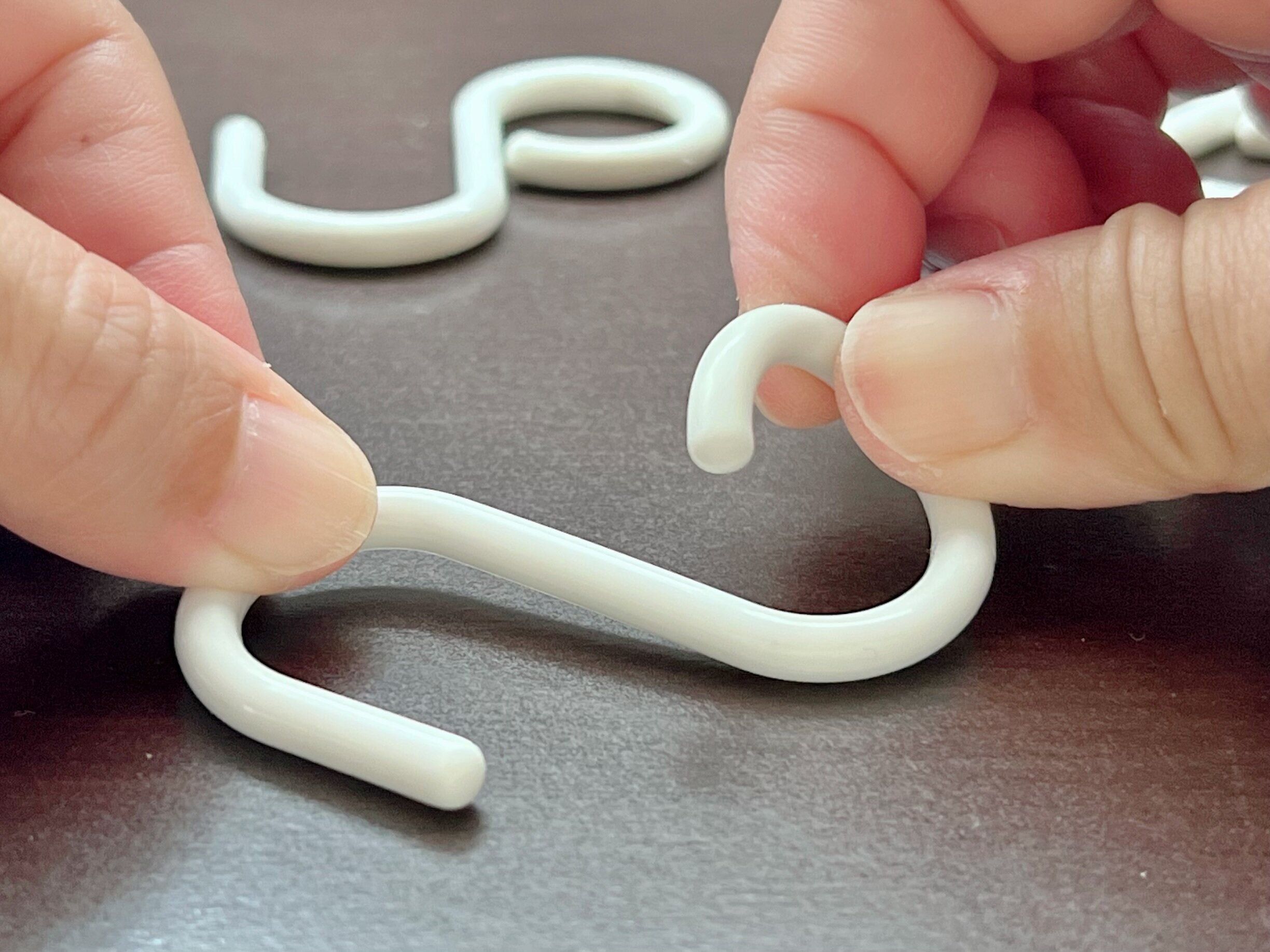 S字フックはちょっとしたものを吊り下げるのに便利ですが、吊り下げているものを取ろうとしたときにS字フックごと落ちることはありませんか。S字フックを落とさずに片手でものを取るのは難しいくらい。