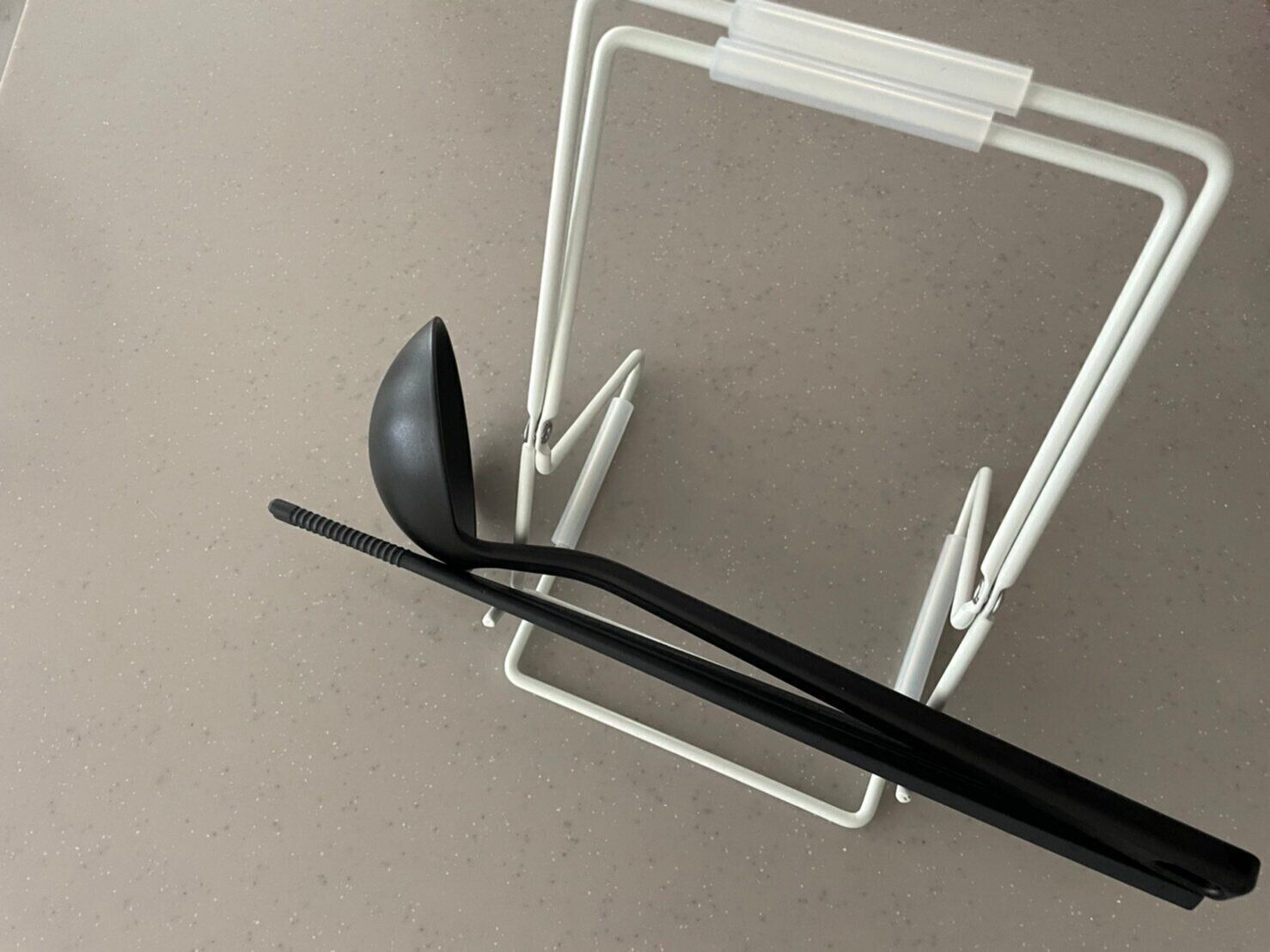 また、ホルダーを折りたたんだ状態にすると、タブレットを置くことが可能。例えば、料理中にレシピを見たり動画を見たりと、キッチンでゆっくりと過ごしたい方にもおすすめですよ。