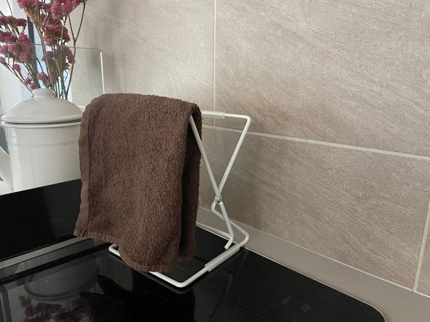 布巾かけとして使うのも便利です。ホルダーを開いた状態で、2枚かけることができます。