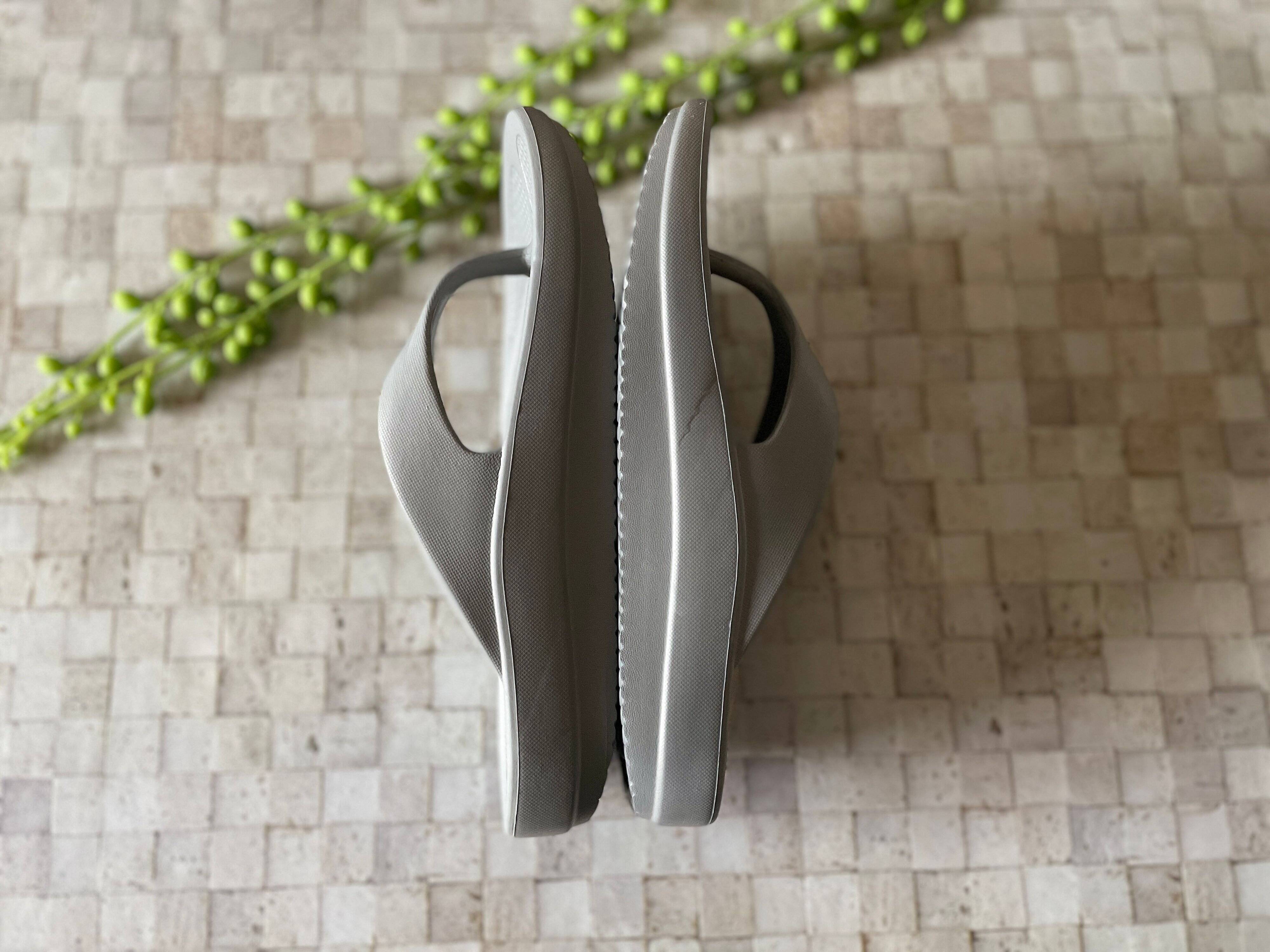 しかし、このサンダルは普段の服装に合わせて使っても違和感がありません。リカバリーサンダル風だから、むしろオシャレな雰囲気です。
