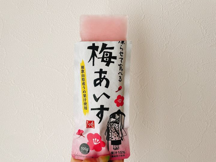 かわいらしいピンクのあいすで、青梅とは違った、甘さを感じられる梅味です。
