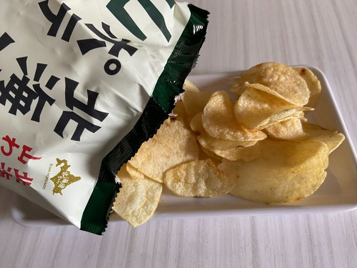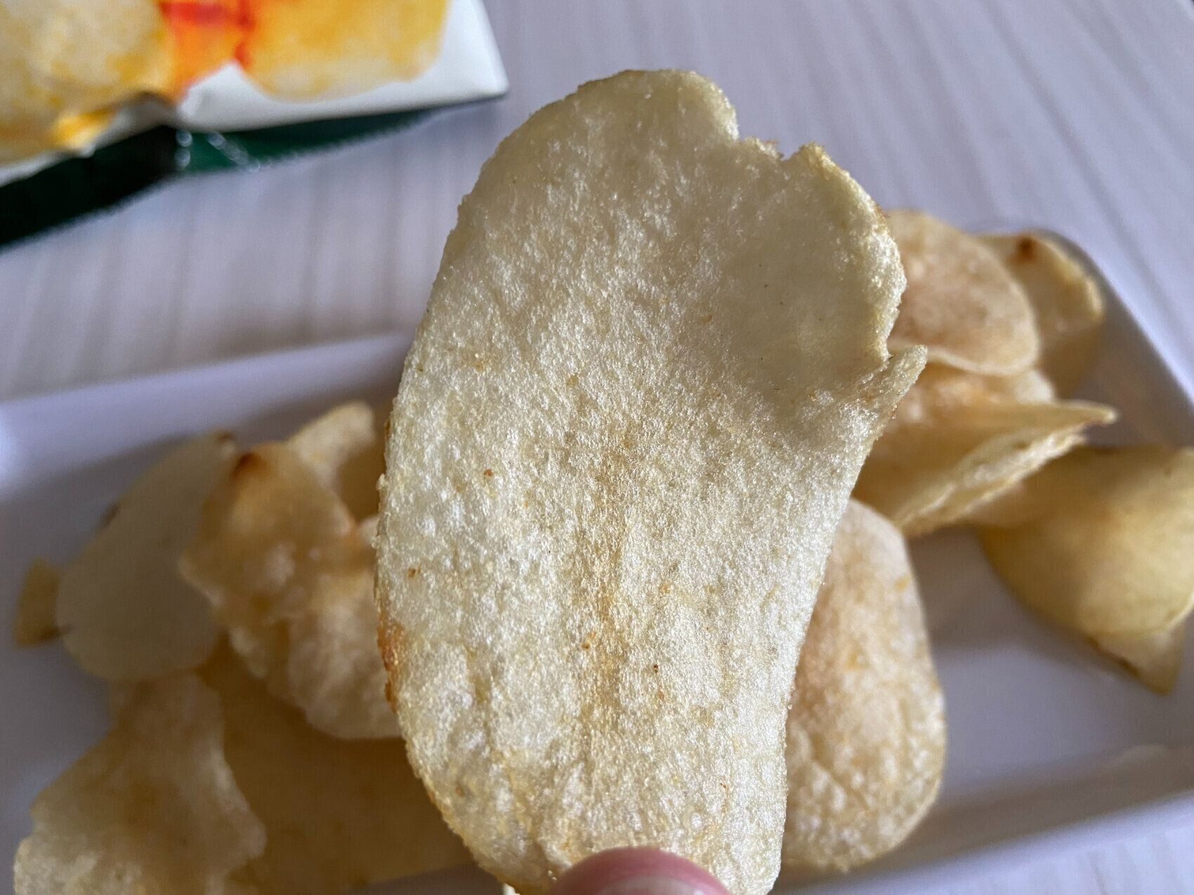 わさびの香りはあまりしないので、見た目は普通の塩味のポテトチップスのように見えます。