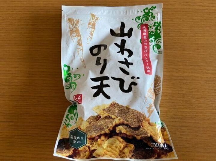 こちらも辛みが強い山わさび使用の「山わさびのり天」(購入時:298円)。のり天スナックは今までさまざまなフレーバーが販売され、人気のシリーズです。