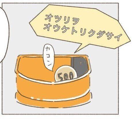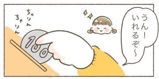 トモミさんは2,000円を入れると「ありがとう、100円玉2枚入れてくれる?」とにーんちゃんにお願いをしました。