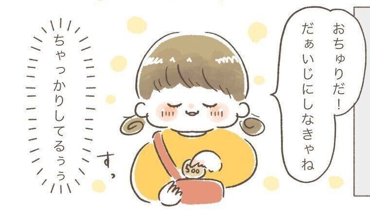 「おちゅりだ!だぁいじにしなきゃね」と言うにーんちゃんに、(ちゃっかりしてるぅぅ)と心でツッコむトモミさんでした。