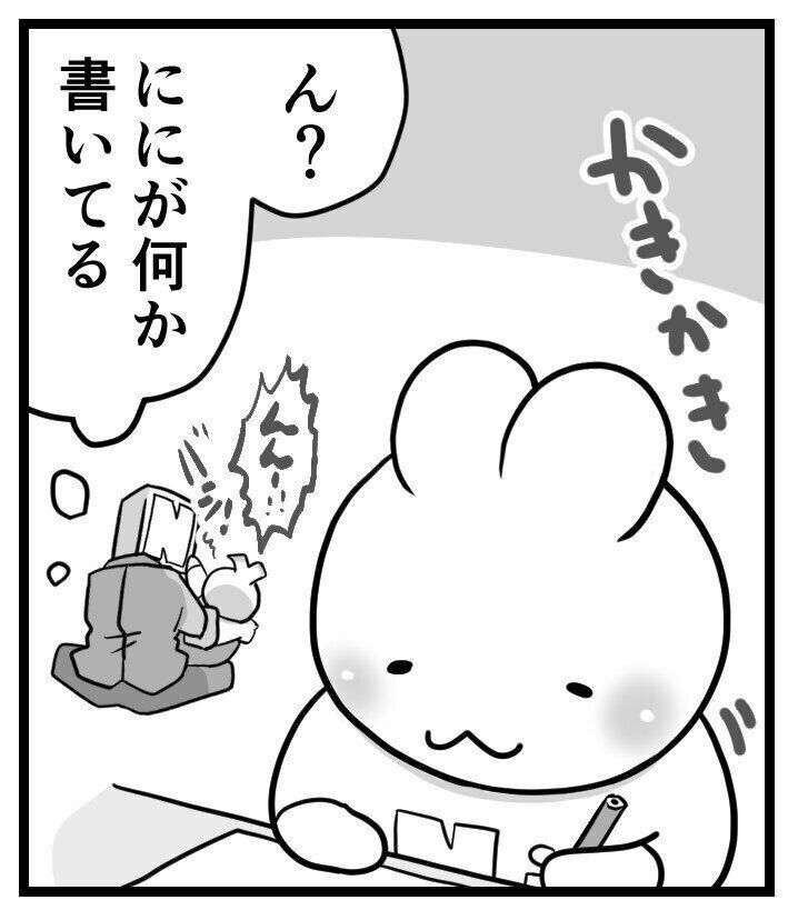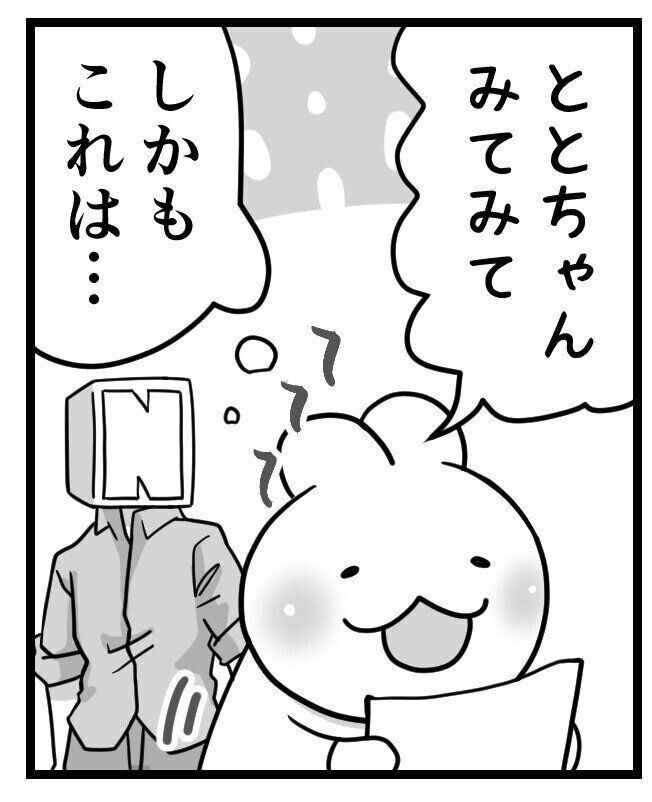 そして書き終えたににくんは、紙を持ってととちゃんの元へ。