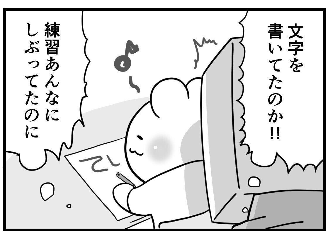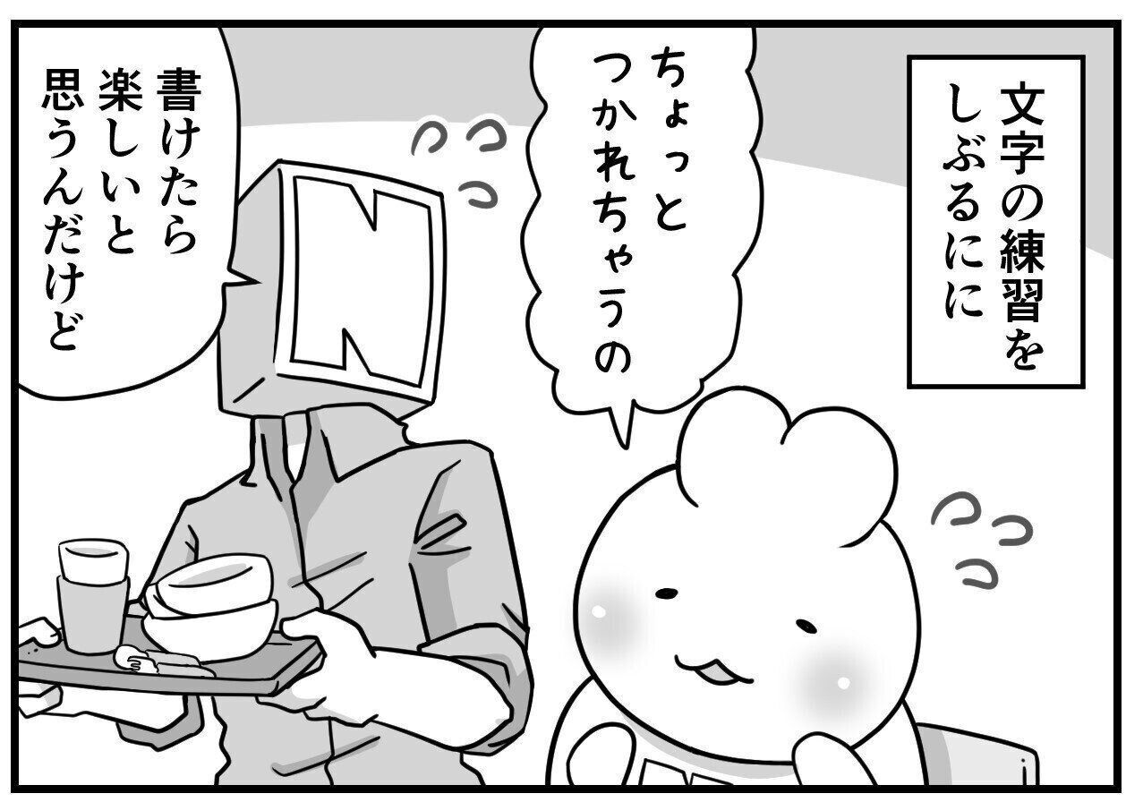 お兄ちゃんのににくんは「ちょっと疲れちゃうの」と文字の練習をしぶっていました。