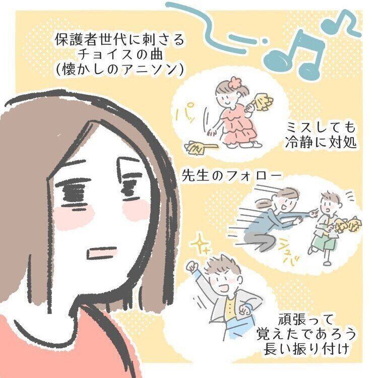 「不安でグズったりトイレの回数が増えてしまったり、本番までにたくさんのトラブルがあったので、堂々と踊っている姿を見て感動しました」