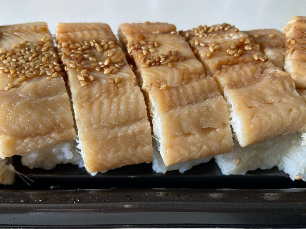 回転しないちょっと高級な寿司店で出てきそうな、とろ穴子を使った特大の穴子バッテラ。ふっくら柔らかで厚みのあるおいしすぎる穴子は、ぜひ穴子好きな方に味わってみてほしい一品です。