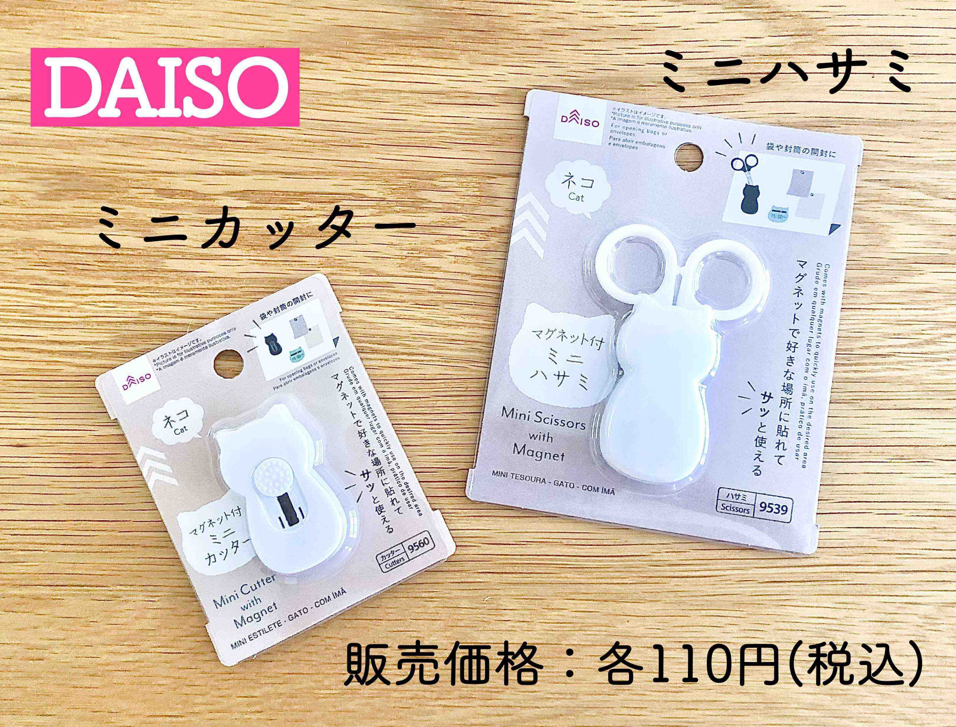 皆さんもかわいくって機能的な、ダイソーのネコデザインのミニハサミとミニカッターを使ってみてはいかがでしょうか?