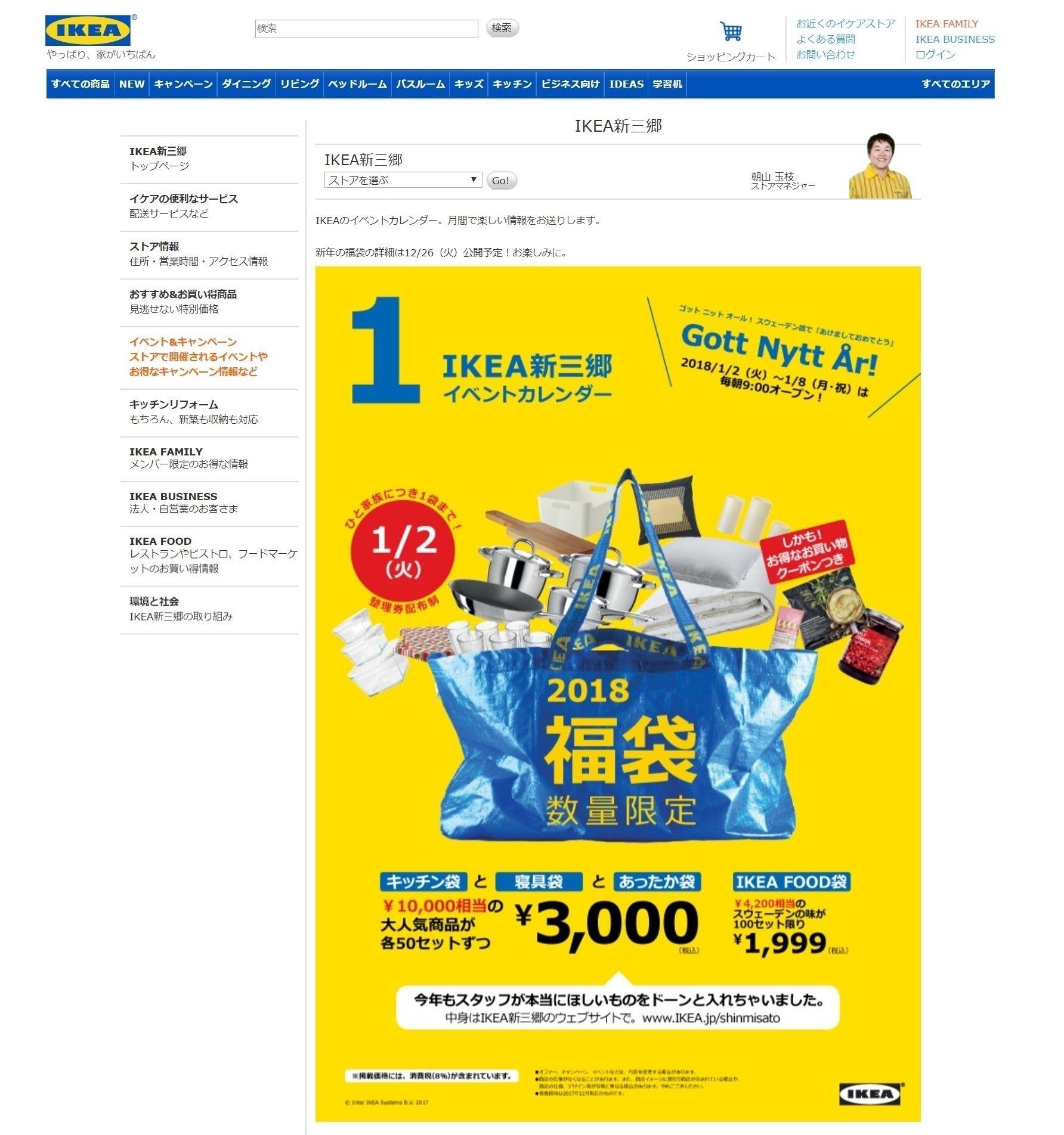便利なグッズがドッサリと詰まった福袋を展開しているIKEA。各ストアのサイトでは続々と情報が公開されています。2017年12月27日現在は、IKEA Tokyo-Bay、IKEA新三郷、IKEA鶴浜のストアページで福袋情報をチェックすることができます。