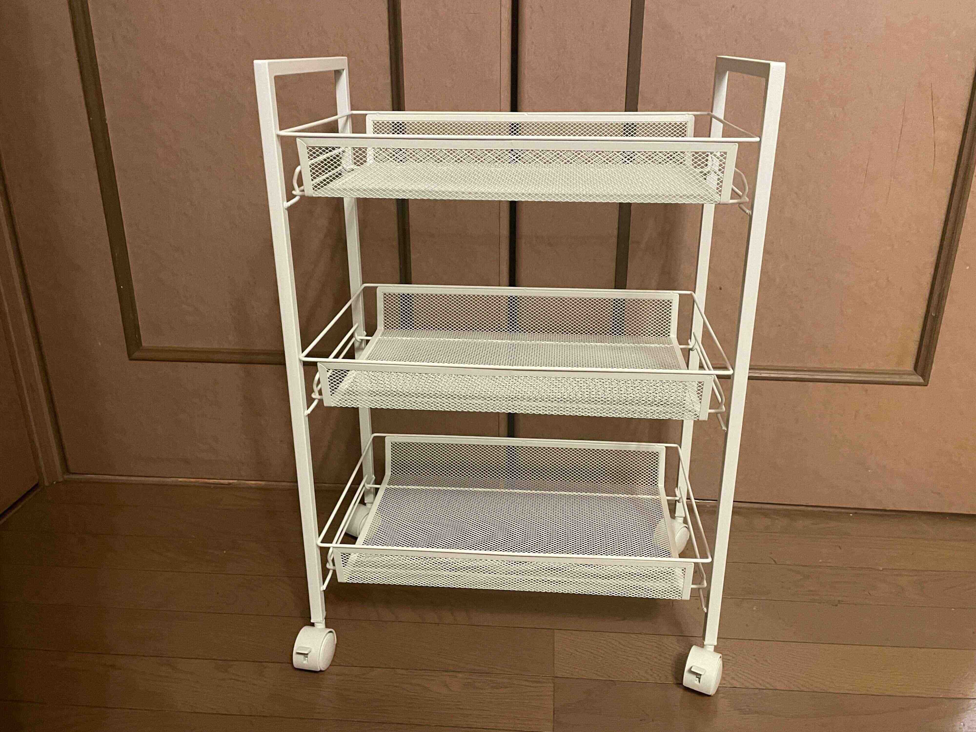 「100均のキッチンワゴンってどうなんだろう?安いし、なんちゃって商品かな?」と思っていたら、めちゃくちゃ本気の使える商品でした。組み立ても簡単で見た目もおしゃれ、さらに丈夫で言うことなし。買って損なしのおすすめアイテムですよ。もう1個買うか迷うほどです。