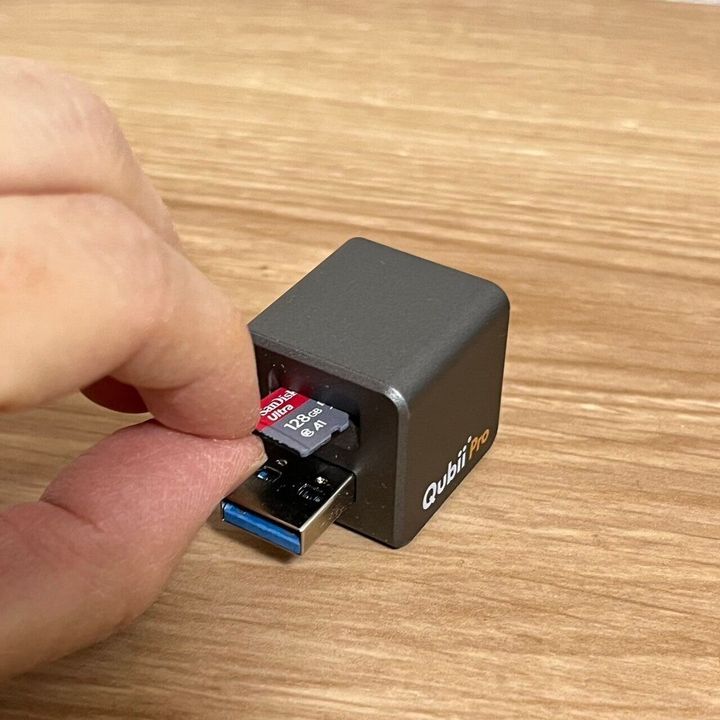 とてもコンパクトで、大きさは充電器ほど。最大2TBのSDカードまで対応しています。