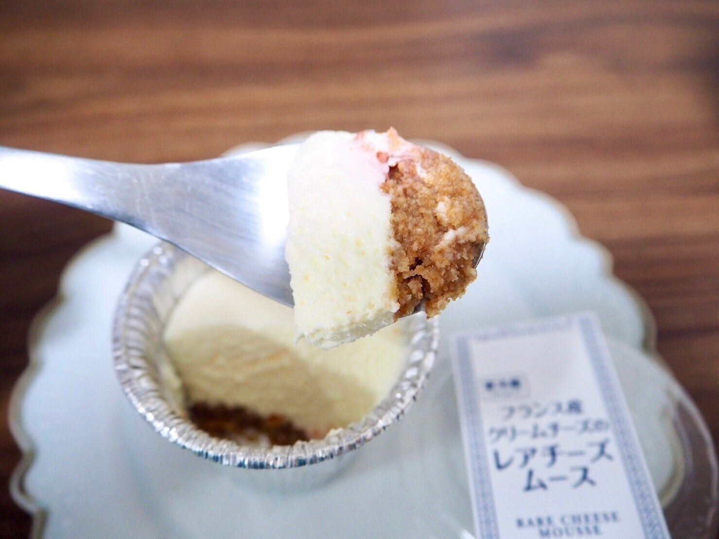 フランス産クリームチーズと北海道産マスカルポーネを使用した風味豊かな口どけのよいレアチーズムースは、くちに入れた瞬間にむしゅっと溶けるような食感。