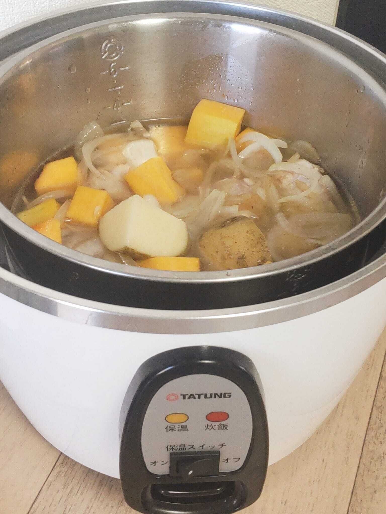 材料を入れて電源を入れるだけで、炊飯や煮込みができる優れもの。