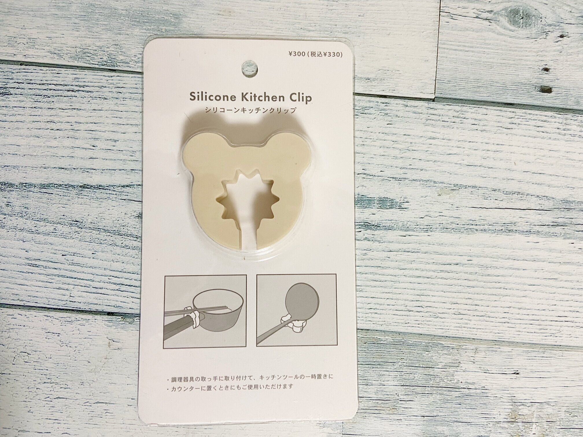 「シリコーンキッチンクリップ」(330円)は毎日のお料理に大活躍してくれるキッチンアイテム。デザインは筆者が購入したBEARデザインの他にSQUAREデザインの全2種類。シリコーンゴム製で耐熱温度:180℃・耐冷温度:-20℃です。