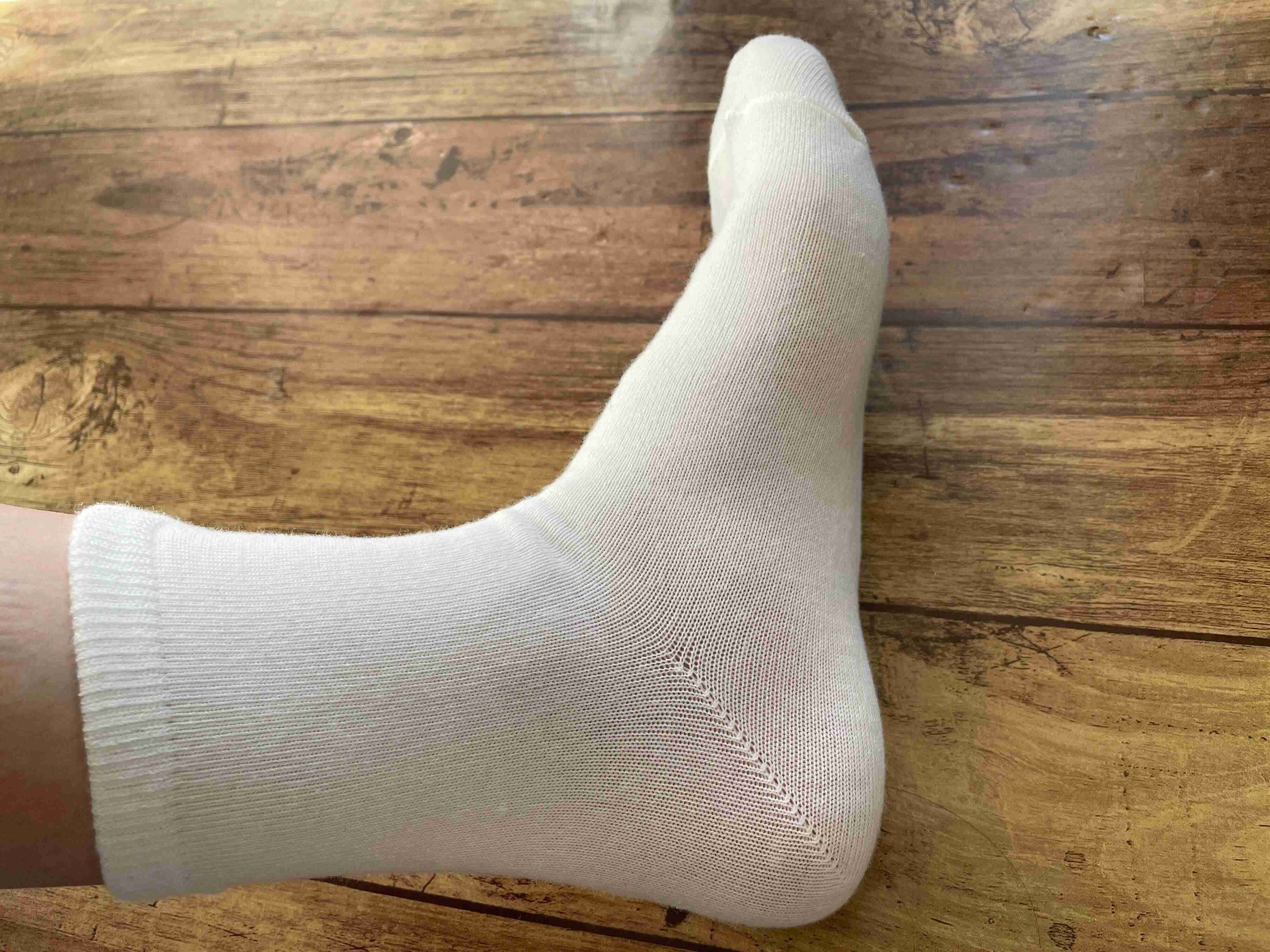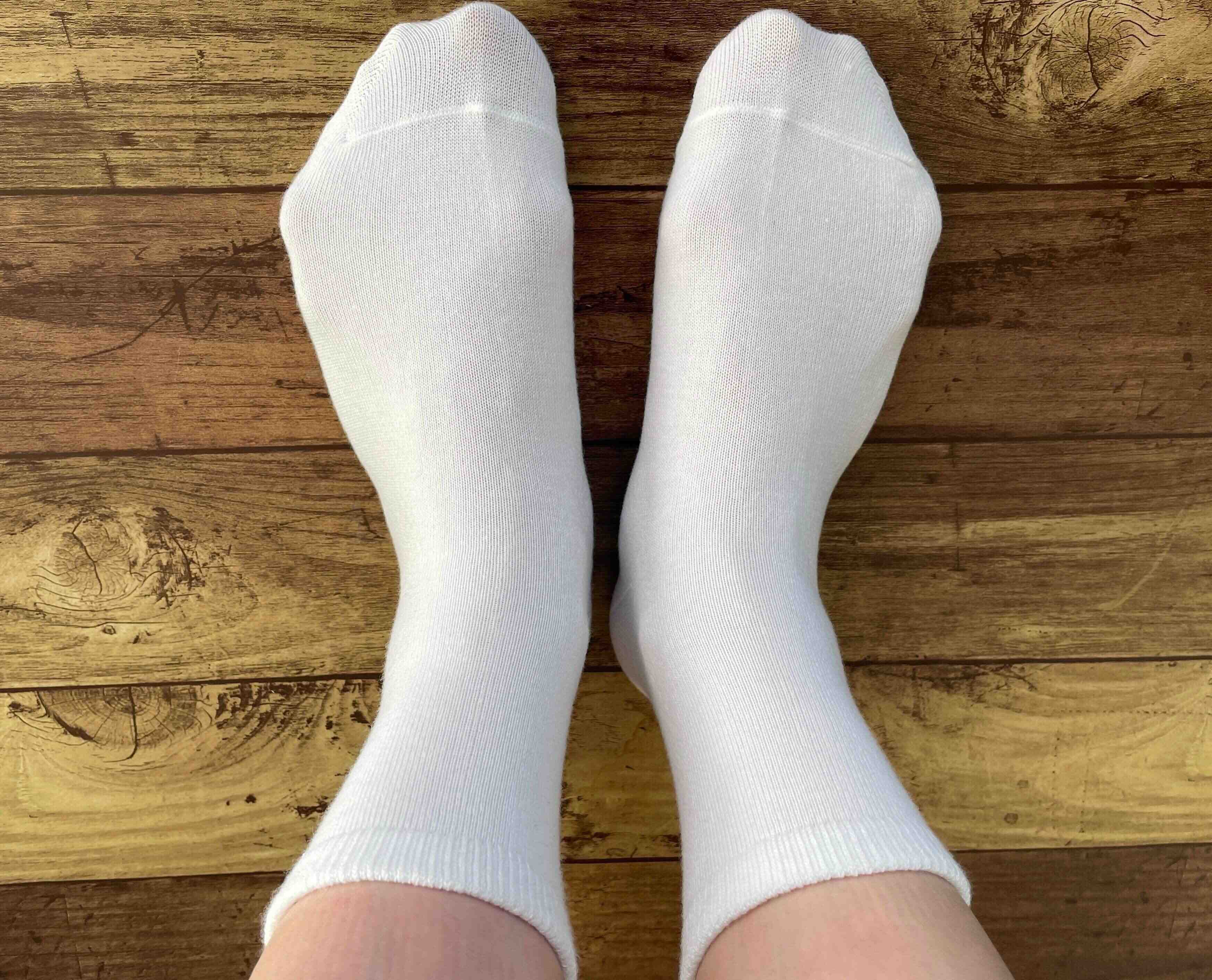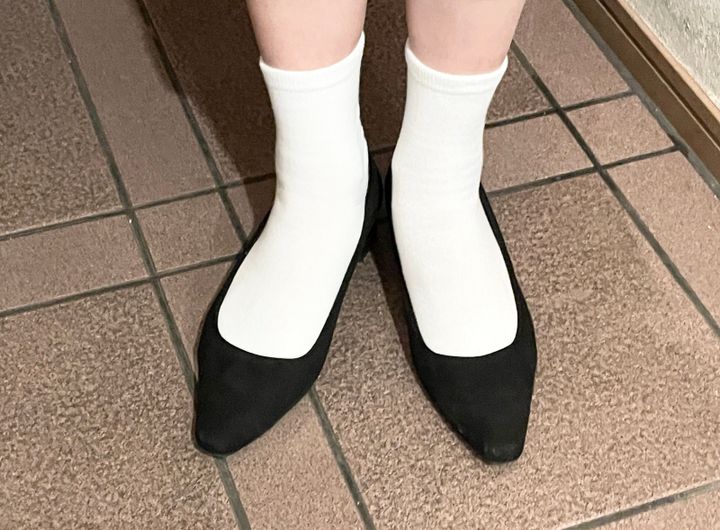 でも、パンプスやバレエシューズに合わせるなら、これくらいの薄手の靴下は重宝するかもしれません。シンプルな見た目もパンプスに向いていますよね。