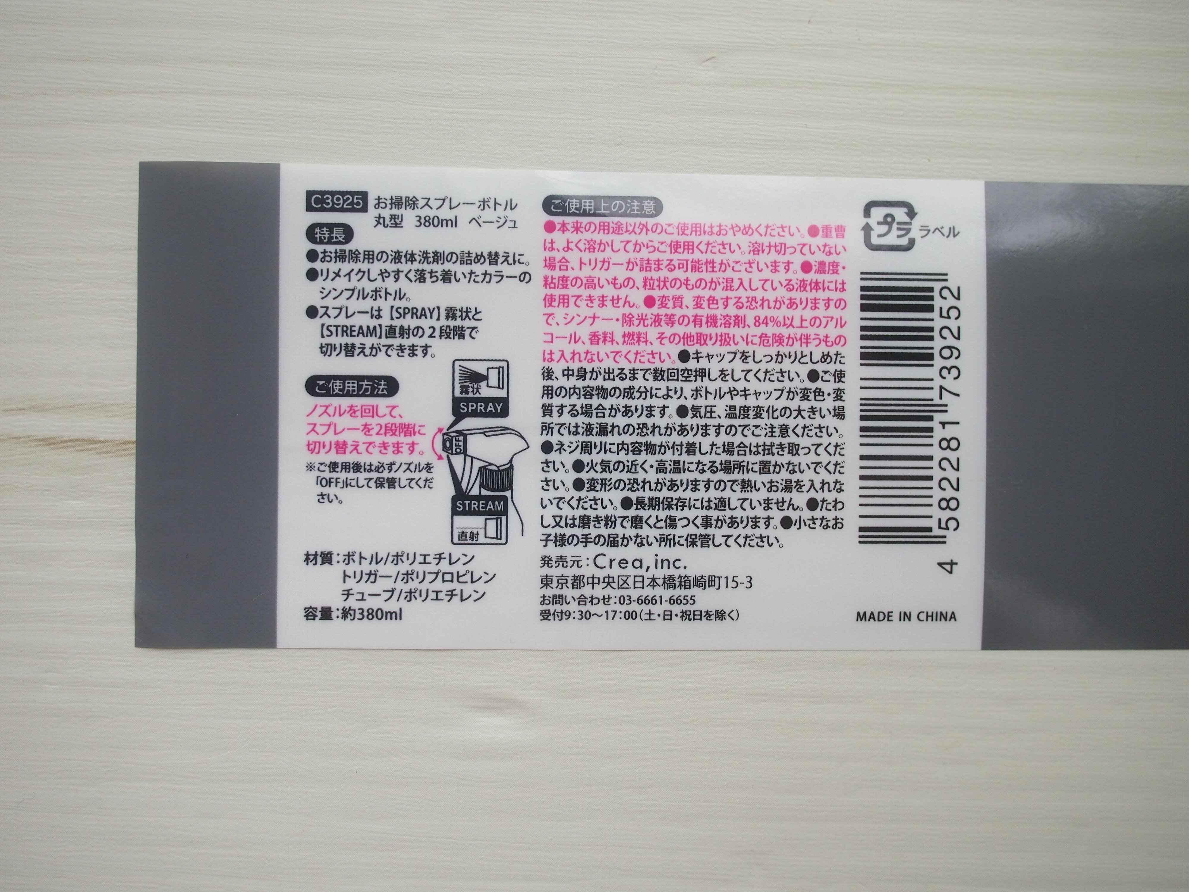 お掃除などに使うスプレーボトルの多くはノズル部分がカラフルだったりするので、ラベルを剥がしてもどこかオシャレ感に欠けるものが多くありませんか?