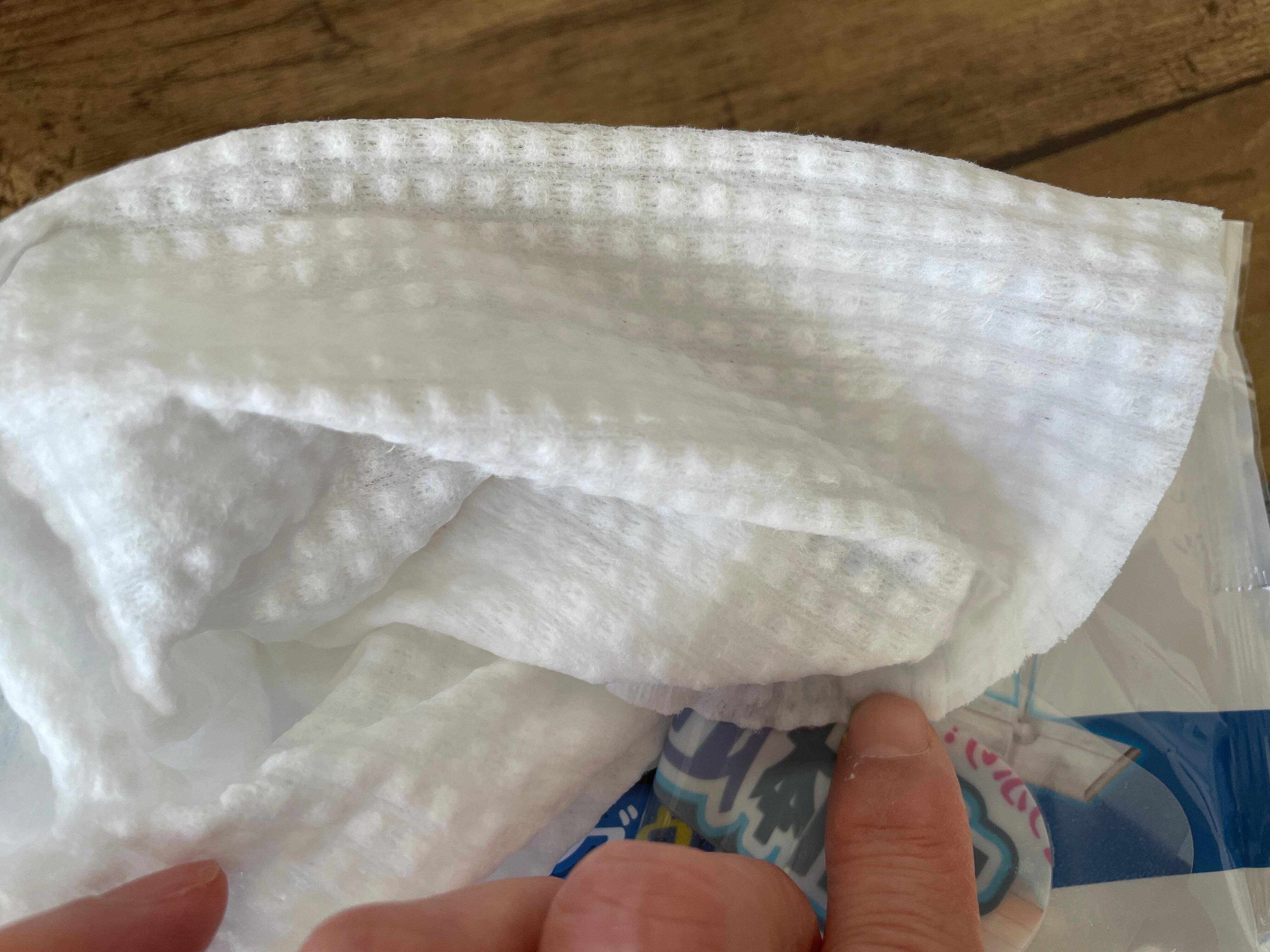 ウエットシートも、もちろん厚手で立体的!しかも、洗剤成分は含まれていないのです。