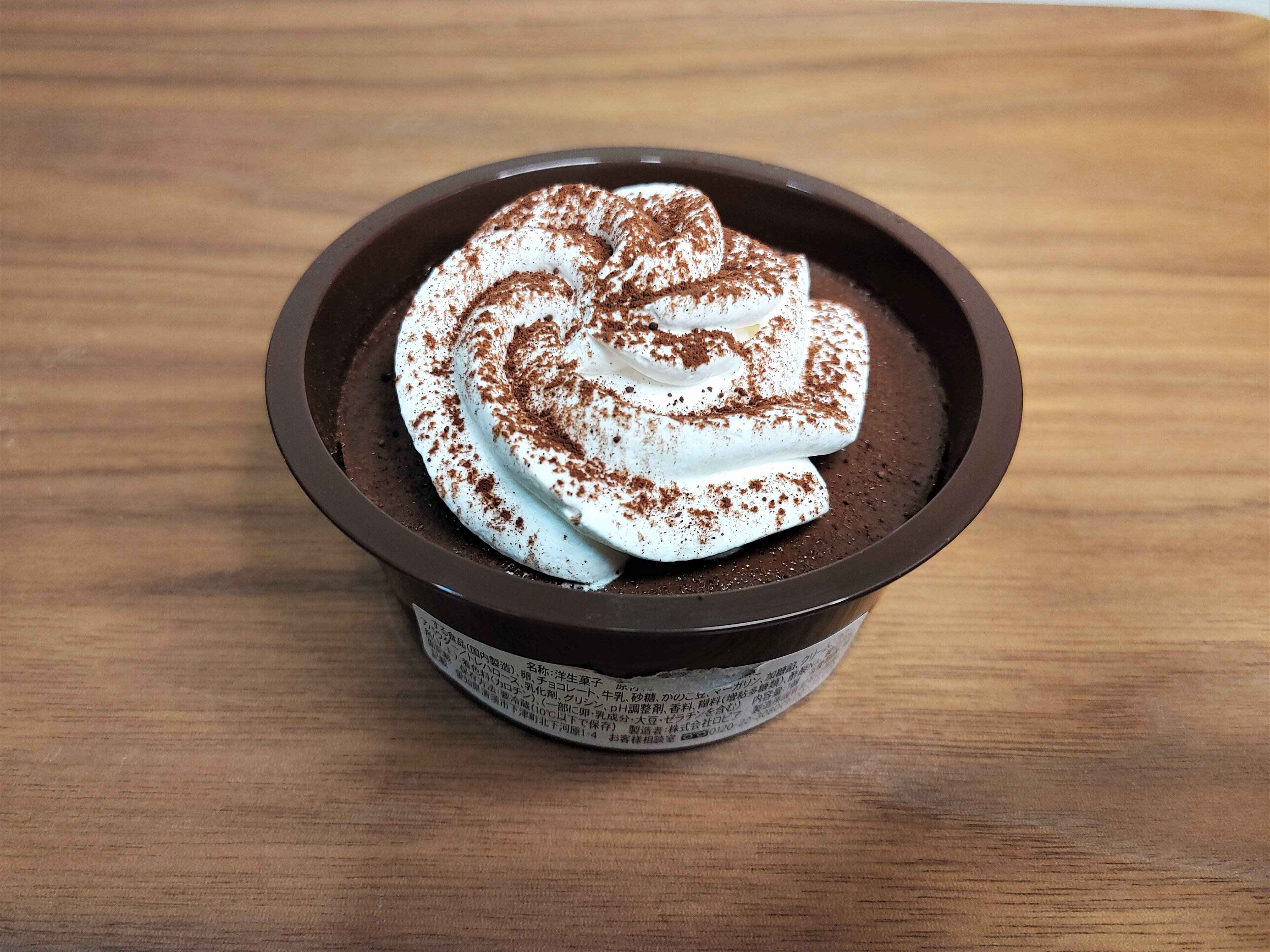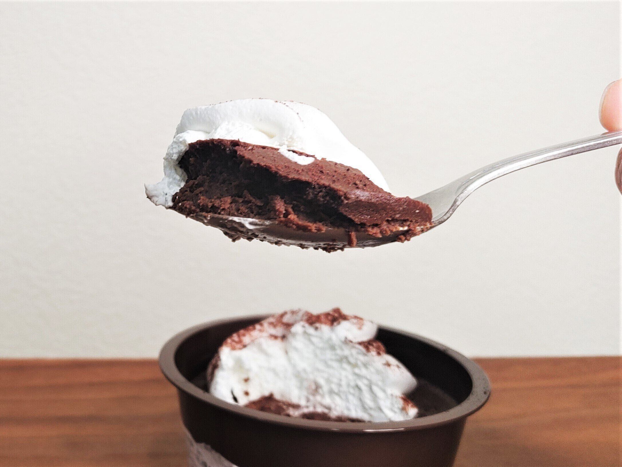 上部のホイップクリームは、甘さ控えめな上に、とても軽い口当たりで、濃密なショコラ生地と絶妙なバランスを取っています。