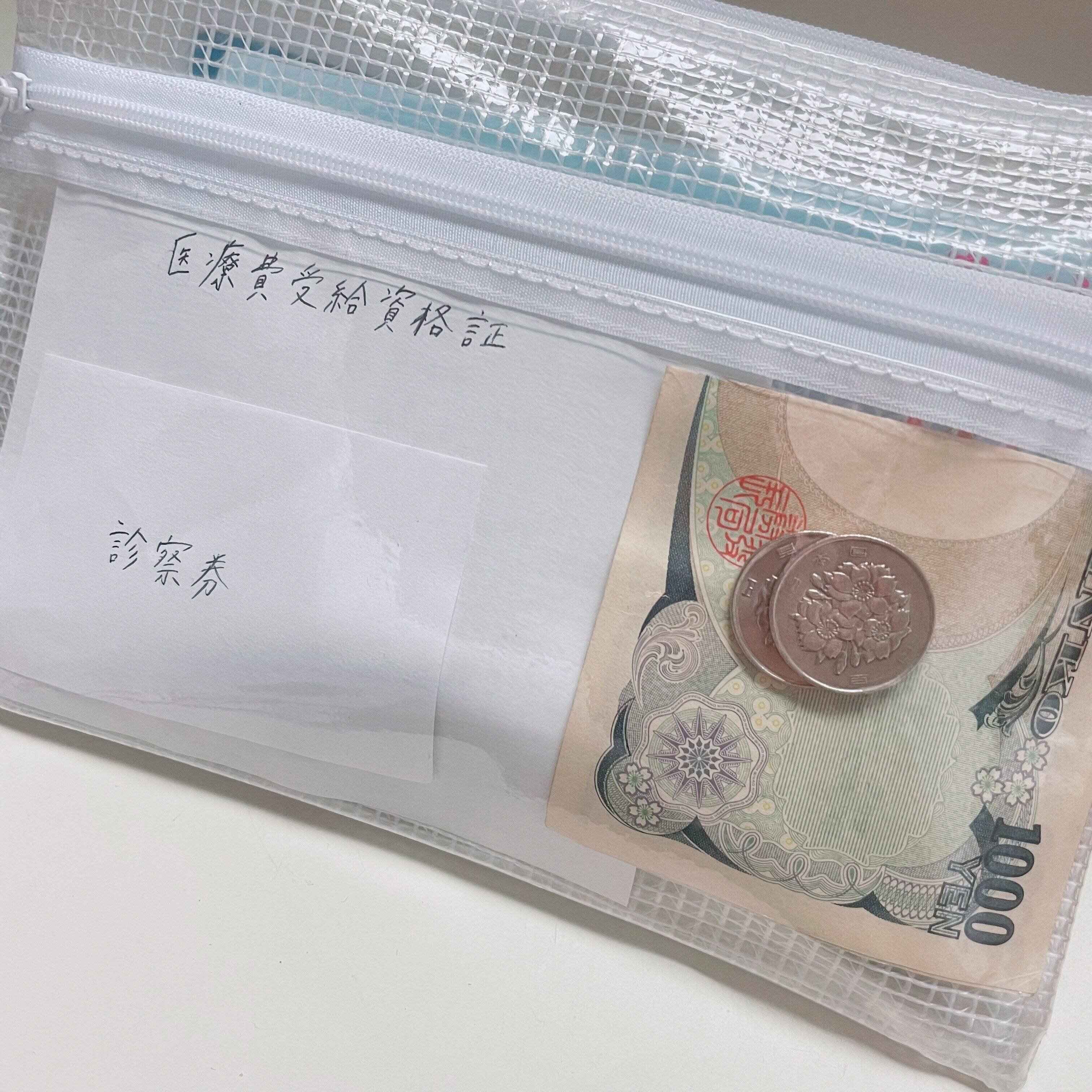 医療費がかかる場合は、お金も一緒に入れておくと、財布を出し入れする手間も省けますよ。