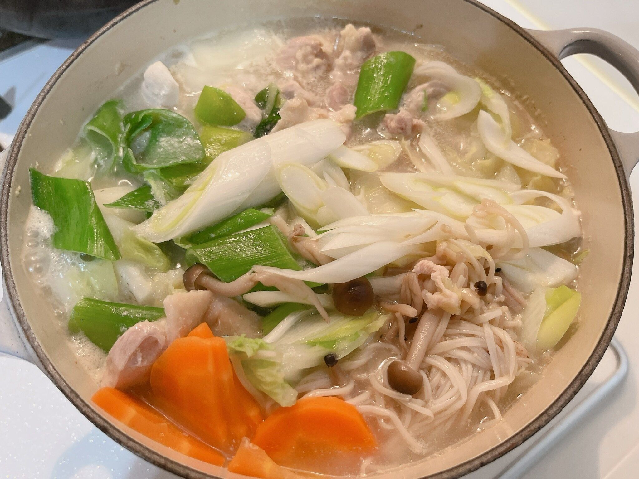 今回は鶏肉、白菜、にんじん、大根、えのき、しめじ、長ネギを使用しました。