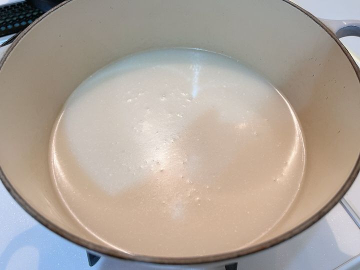 鍋にスープを入れると、白濁したの濃厚なスープがお目見え。ストレートタイプで600g入り(2~3人前)です。