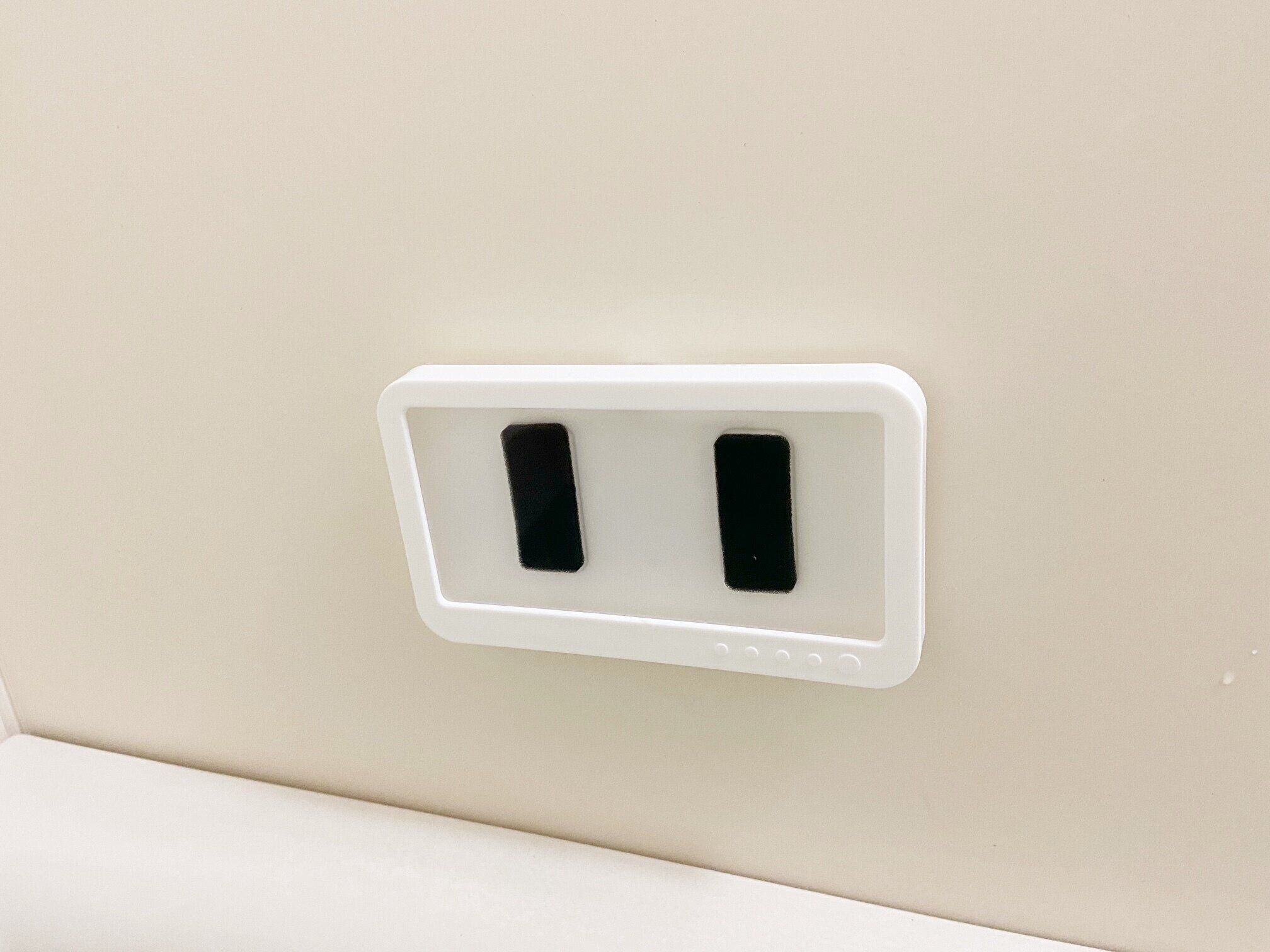 粘着シートは壁が凸凹している素材だと外れやすいかも……。つるつるした壁になら問題なく使用できます。