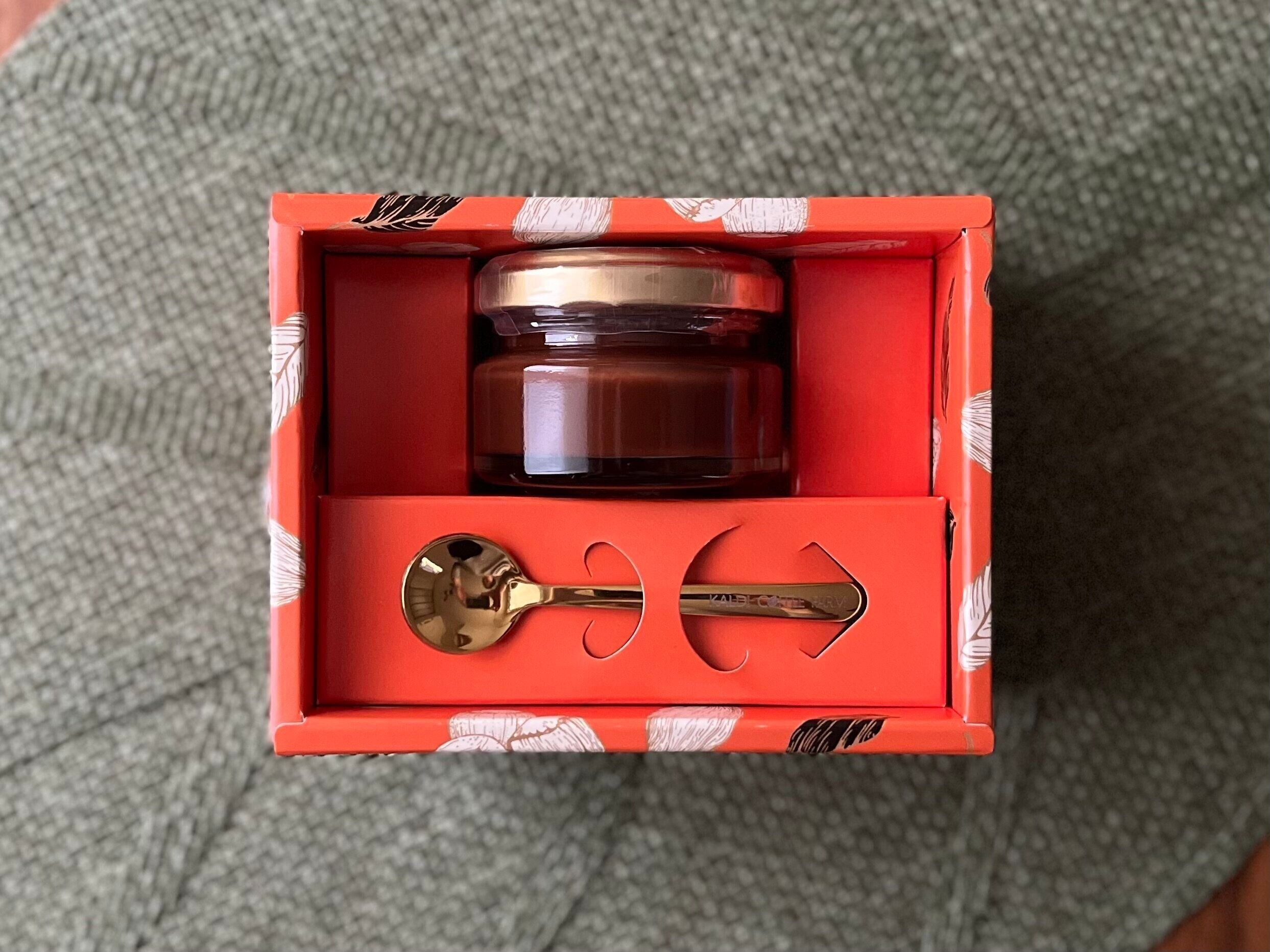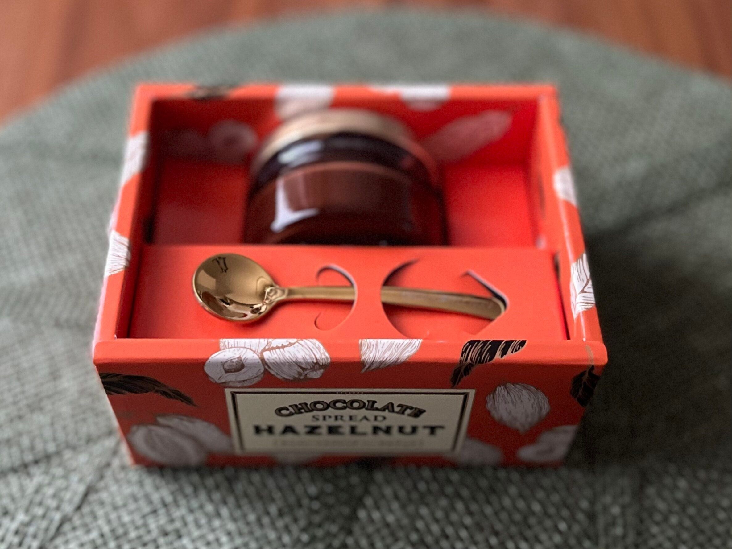一見、小瓶に入ったよくあるチョコのスプレッドですが…なにやら瓶の下には金色の小さなスプーンが。