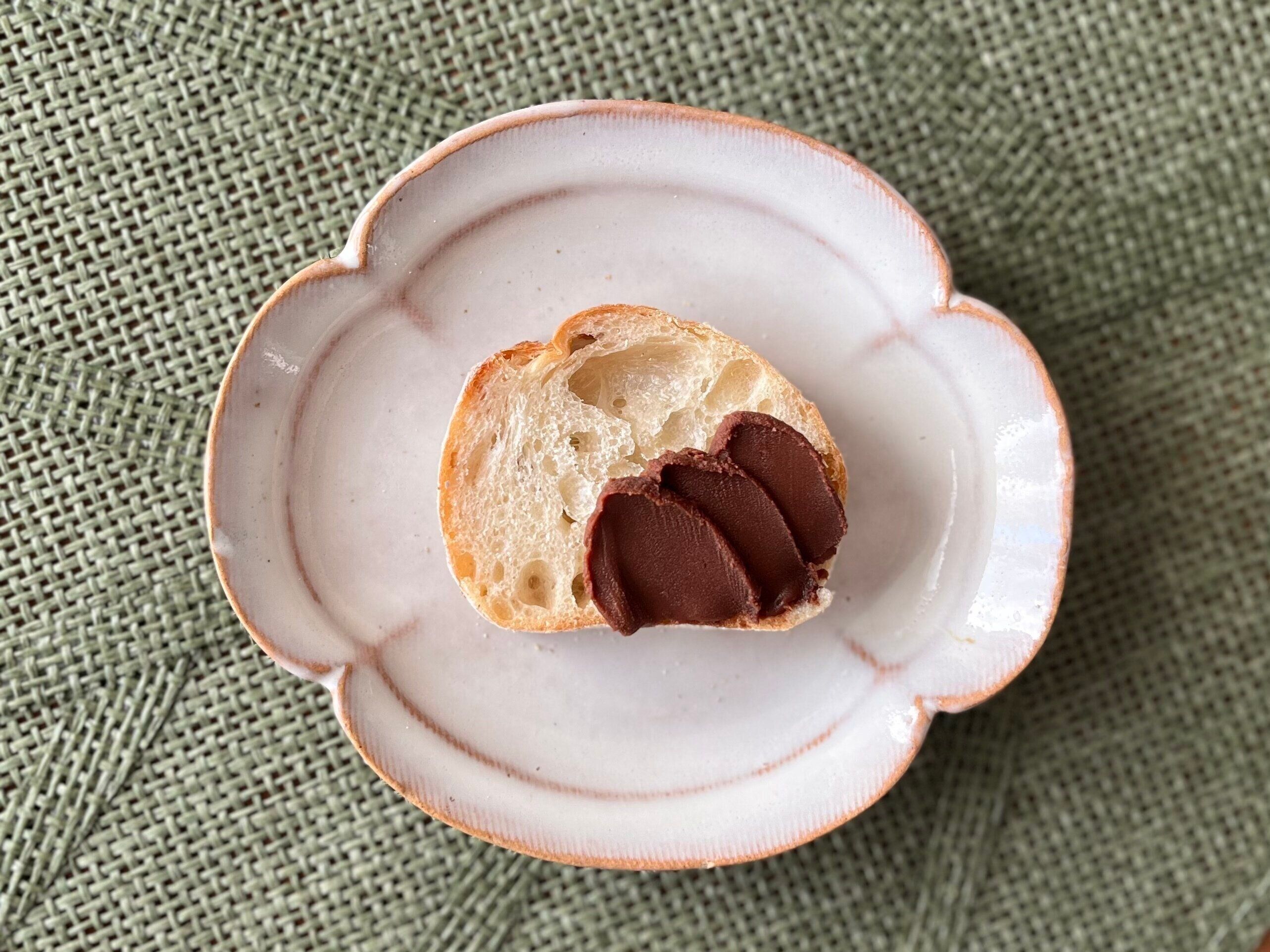 ちなみに、トーストしたパンと合わせると、そのまま食べたときとは少し違った味わいに。ヘーゼルナッツの風味は健在ですが、パンの香ばしさと相まってか、カカオのビター感が引き立ち、甘さのキレがよくなりました。
