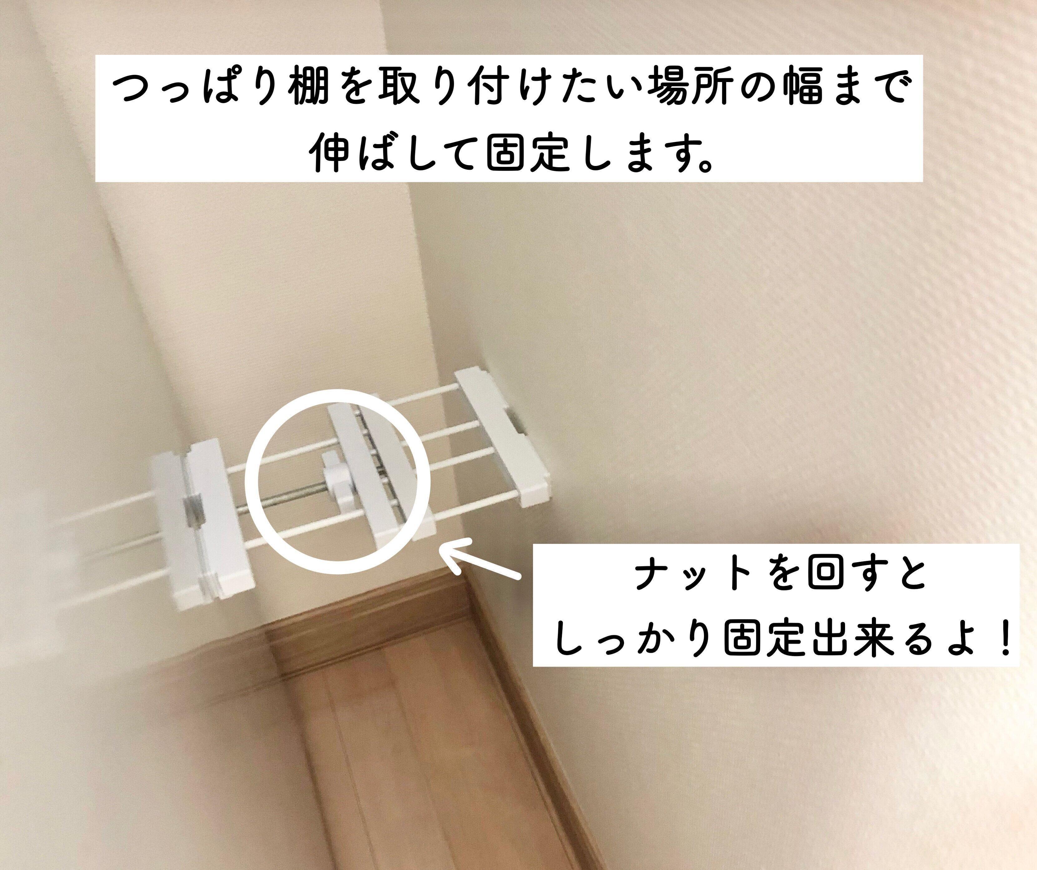 つっぱり棚の幅を調整して固定する。