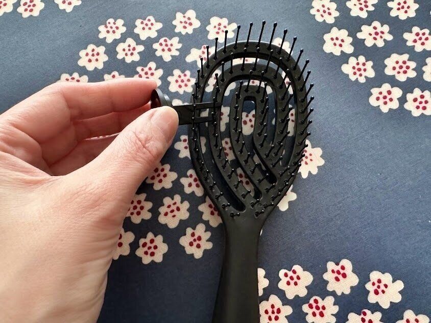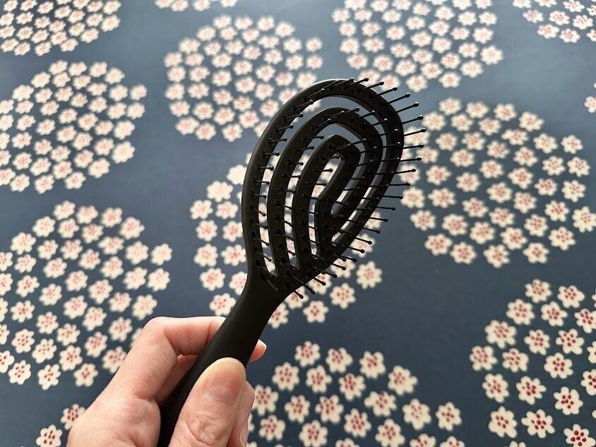 一見、しゃもじのような見た目にびっくりですが、風がとおりやすい形状になっているブラシなんです。この隙間のおかげで風がとおりやすく、ドライヤーを当てながらブローがしやすくなっていますよ。
