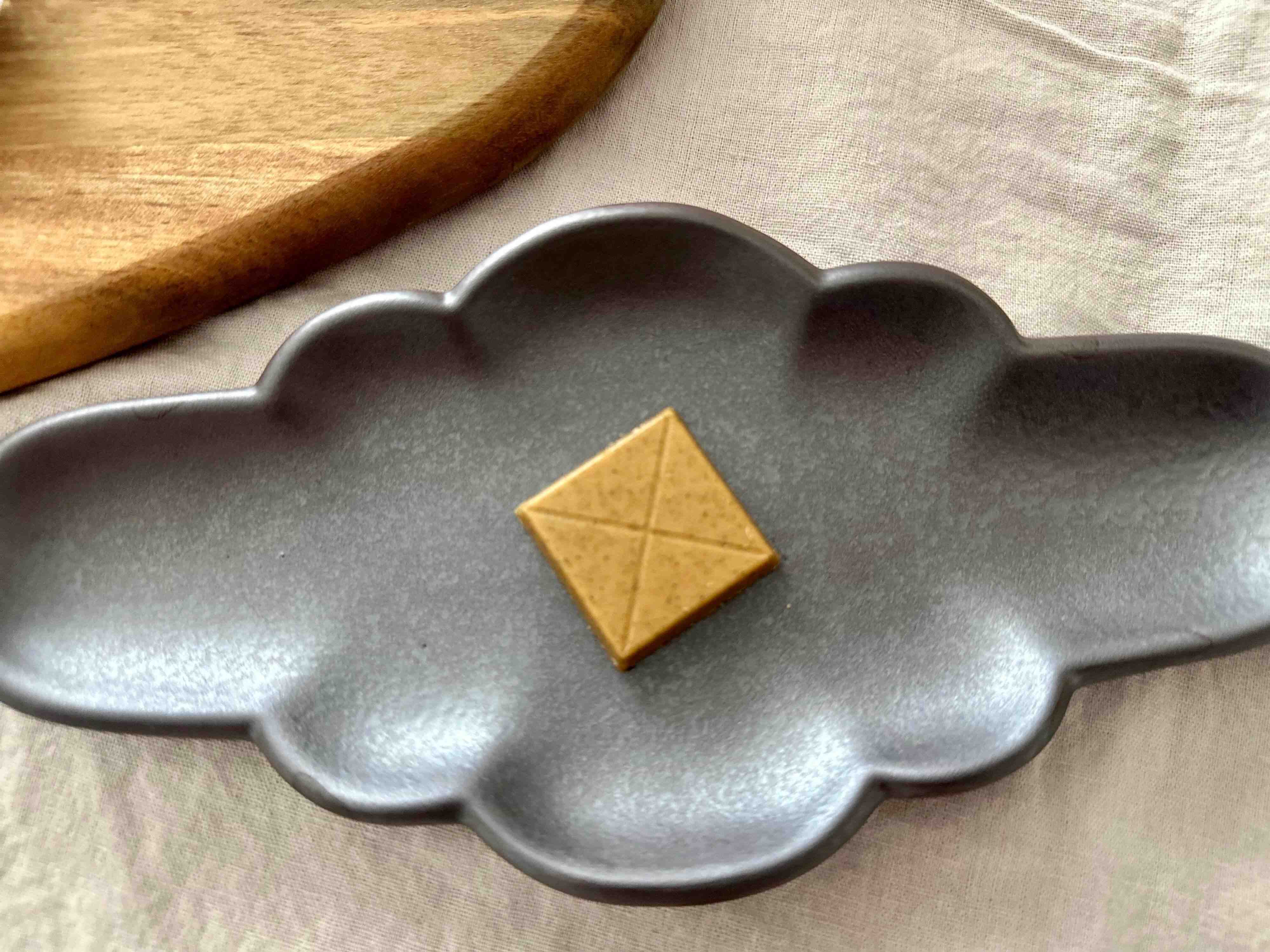 一口食べるとすぐに紅茶のよい香りが口いっぱいに広がり、そのあとすぐにほうじ茶のような香ばしい風味が。最後はやはり紅茶の香りが残りました。