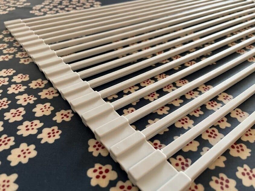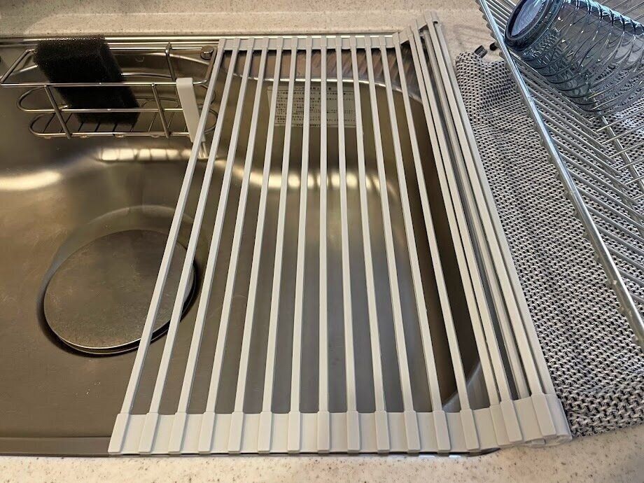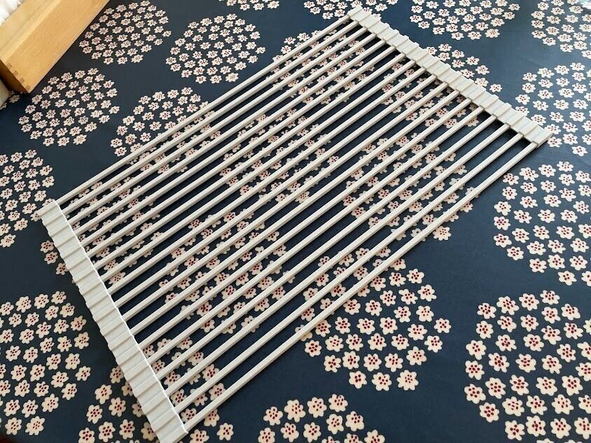 大量の洗い物があってもこのロールタイプを持っていれば、吸水マットとの併用で困ることがなくなりますよ。洗い物の量に合わせて折り畳んで使うことも可能ですし、使わない時はくるくると巻いてコンパクトに収納することもできるので、すごく便利なんです!水切りラックやカゴを卒業したい。と思われている方、ぜひ参考にして頂けたら嬉しいです。