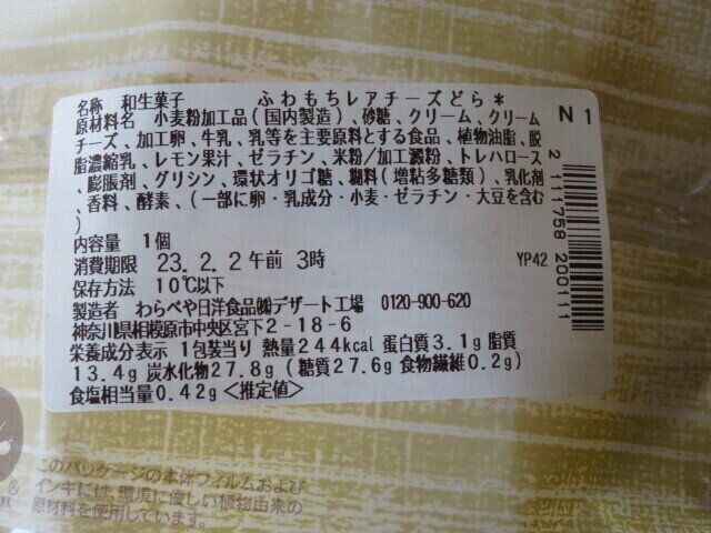 チーズが入っているから高カロリーなのかなと裏を見たところ、熱量244kcalとありました。