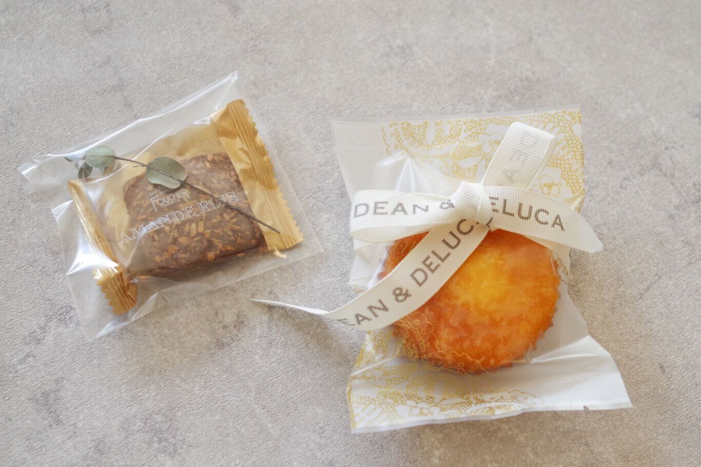 いろいろなラッピング用品が販売されていますが、中身が見える方が素敵。透明フイルムのラッピング袋を愛用しています。100均はもちろん、製菓材料店でも見つかります。ここでは無地で、たっぷり入ったものが販売されていることがあるので要チェック!